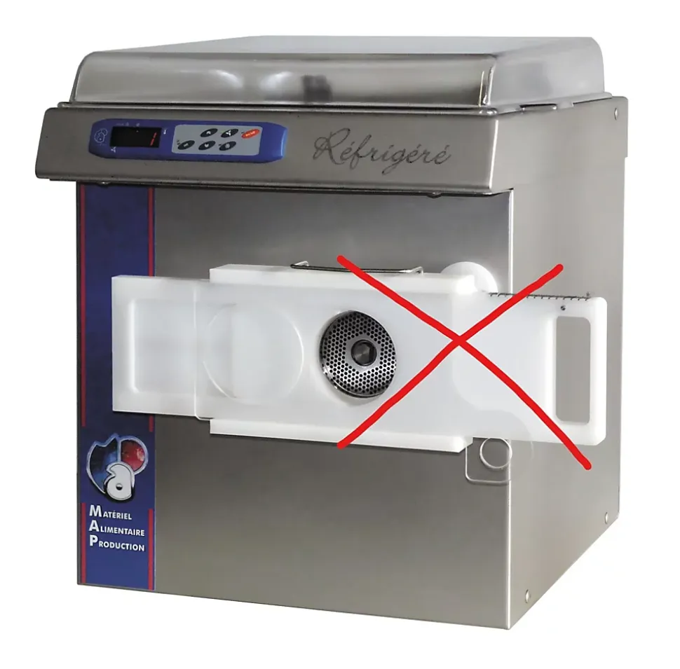 Hachoir Refrigere Map Artic R600A Triphase 380 V Hachoir réfrigéré CLASSIQUE• Construction inox AISI 304.• Corps UNGER double coupe Ø H82 avec grille N° 3 entièrement démontable (autres grilles et couteaux. voir page 164).• Verrouillage du corps par clavetage.• Réserve supérieure réfrigérée de grande capacité.• Couvercle formé en polycarbonate ultra résistant.• Froid de contact à haut rendement. température +1 °C / +5 °C classe 3M1.• Fluide frigorifique R600a / 50 grammes.