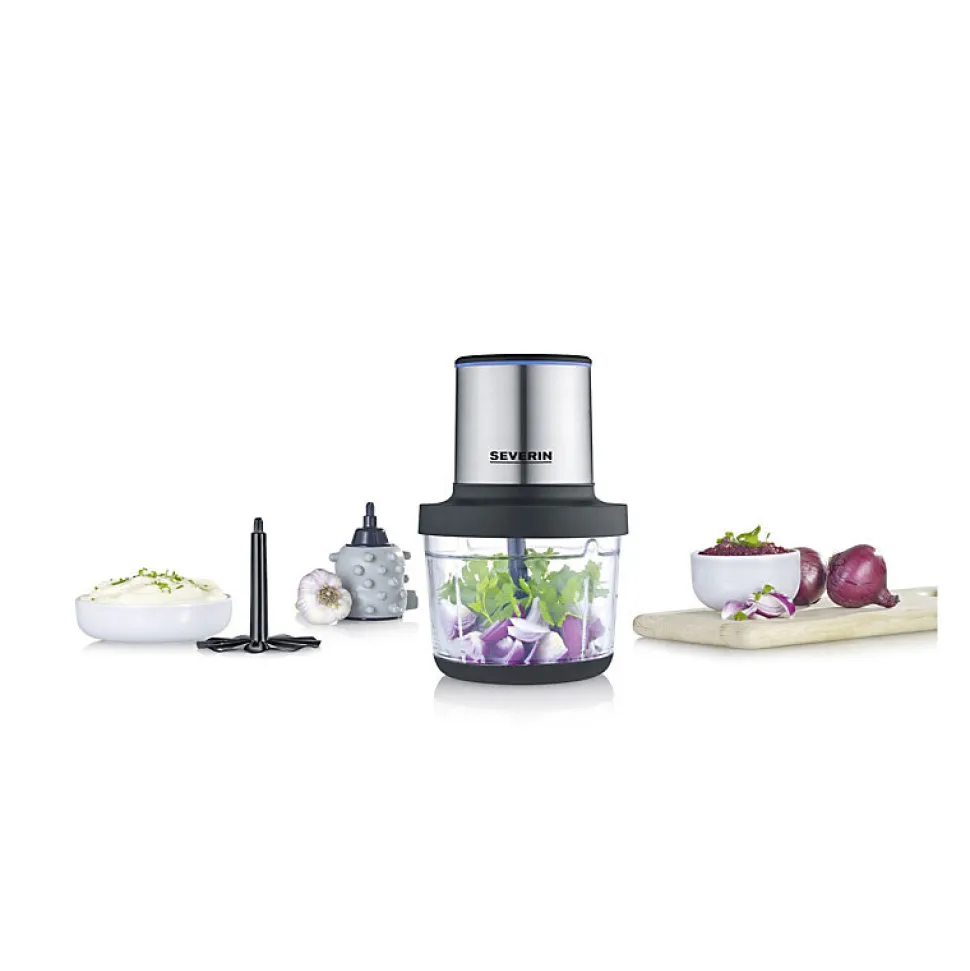 - Couteau inox à 4 lames sur 2 niveaux pour hachage efficace.