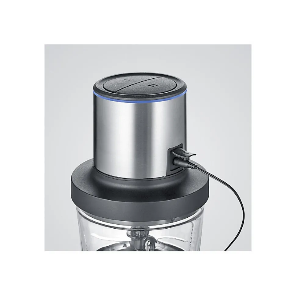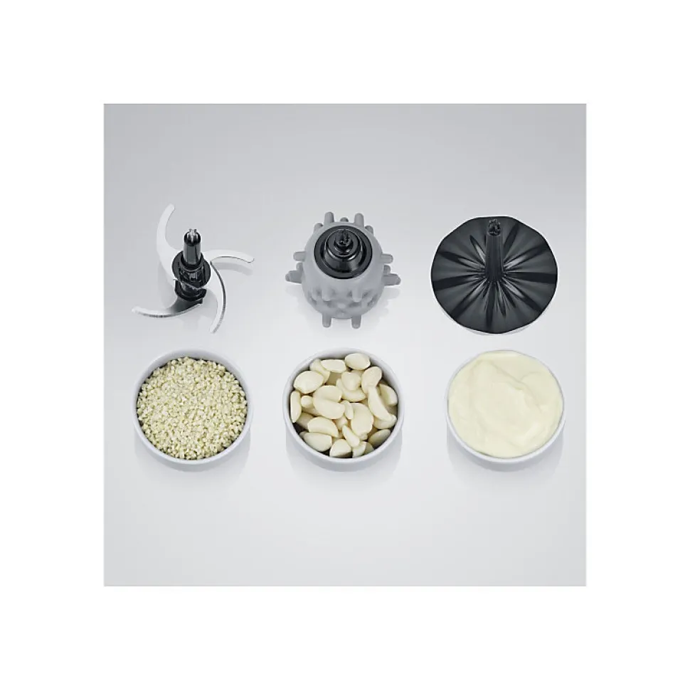 - Accessoires inclus : disque émulsionneur, insert pour éplucher l’ail, anneau antidérapant, chargeur.