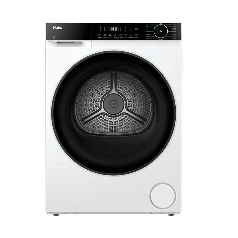 Sèche-linge pompe à chaleur 60cm 9kg Haier – Sèche-linge pompe à chaleur HD90-D357U1FR de HaierSèchage doux : Prenez soin de votre linge délicat grâce à un cycle de séchage à basse température.Fonction hygiène : Une hygiène impeccable à haute température idéal pour le linge de lit, les vêtements de bébé et de sport.I-refresch : Rafraîchissez, défroissez et désodorisez vos vêtements, même les plus délicats, grâce à un flux d’air chaud qui détend les fibres et élimine les odeurs.Filtre 3 en 1 : Plus besoin de se baisser pour nettoyer le condenseur grâce au filtre 3-en-1. Placé à l’intérieur du hublot, ce filtre innovant collecte facilement les peluches et les fibres au même endroit grâce à sa conception en trois couches. Il simplifie ainsi l’entretien de votre sèche-linge et garantit des performances de séchage optimales.Fonction anti-plis : Pratique en cas d’absence à la fin du cycle, la fonction Anti-plis fait tourner le tambour par intermittence après le séchage afin d’éviter la formation de plis lorsque le linge n’est pas retiré immédiatement.Connectivité : Grâce à l’application hOn, profitez de plus de 60 programmes supplémentaires, recevez des notifications d’entretien pour votre sèche-linge et bénéficiez de conseils pour prendre soin de votre linge. – Type de produit : Sèche-linge.Type de séchage : Pompe à chaleur.Capacité (kg) : 9.Classe énergétique : D.Conso. d’énergie annuelle totale : 128.Niveau sonore dB (A) : 64.Alimentation électrique : 52 Hz / 6A / 220-240V.Puissance (W) : 2300.Programmateur : LED.Affichage du tempsrestant : Oui.Départ différé : 1-24h.Séchage rapide (petite charge) : Oui.Sélection Degré de séchage : Oui.Indicateur nettoyage du filtre : Oui.Indicateur bac à eau plein : Oui.Contrôle d’humidité du linge : Oui.Fonction anti-froissage : Oui.Indicateur de fin de cycle :
