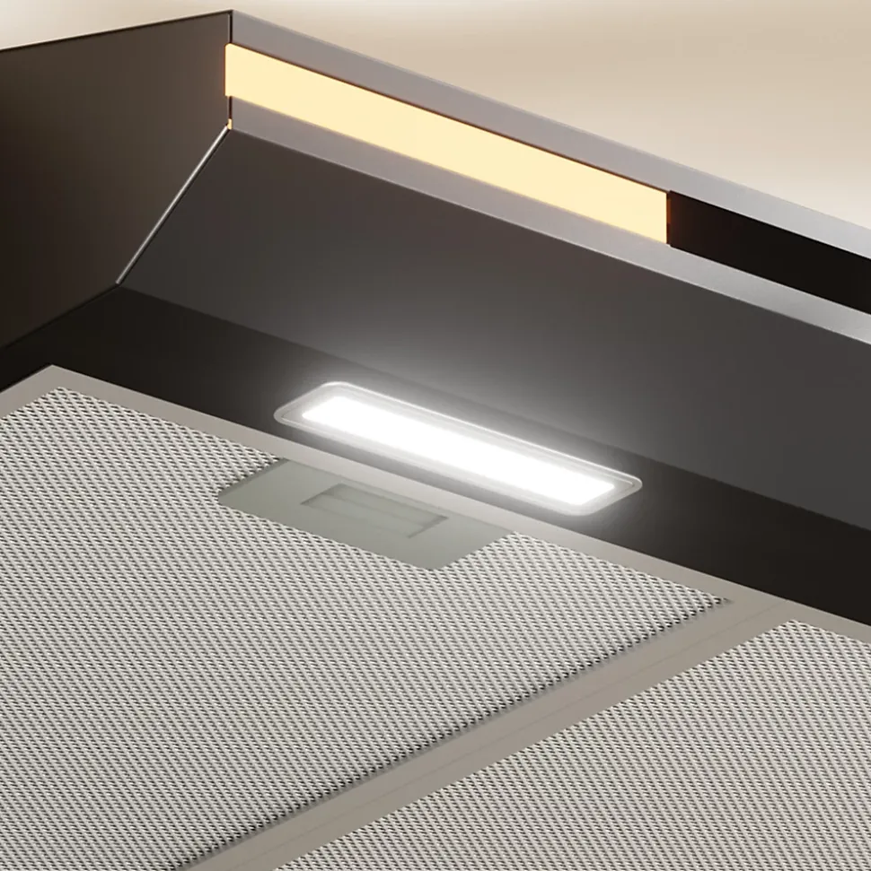 - 2 Éclairage LED : Passez d’un éclairage fonctionnel blanc pour cuisiner à une lumière d’ambiance chaude et apaisante pour créer une atmosphère conviviale dans votre cuisine.