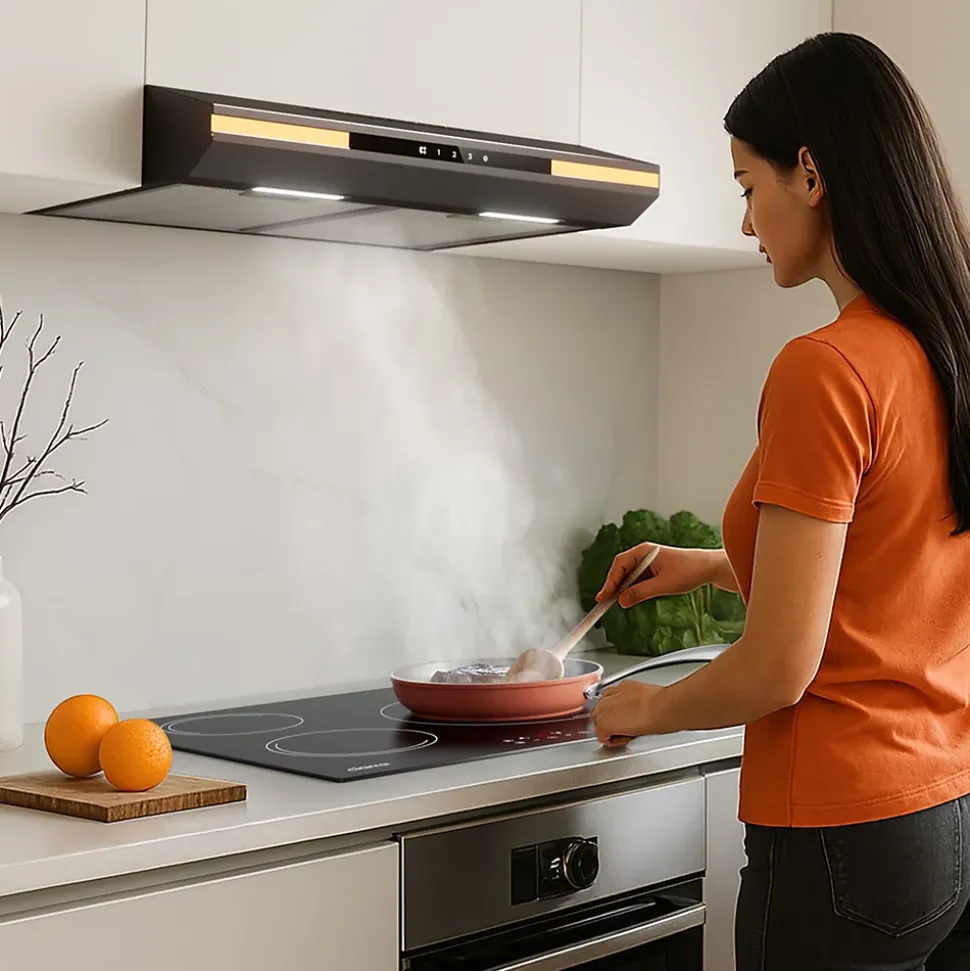 - Double Mode d’Évacuation : Offre la flexibilité de choisir entre le mode extraction et le mode recyclage (filtre à charbon inclus) selon votre installation.