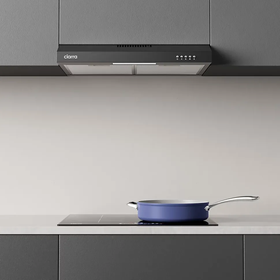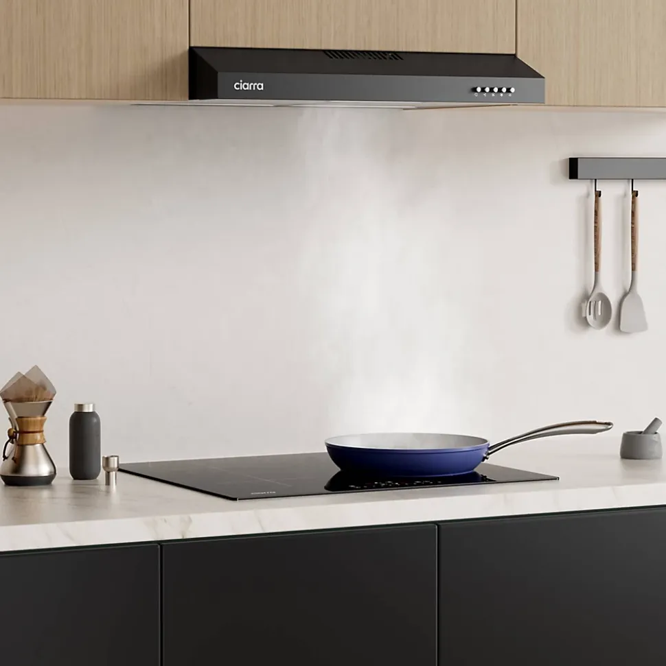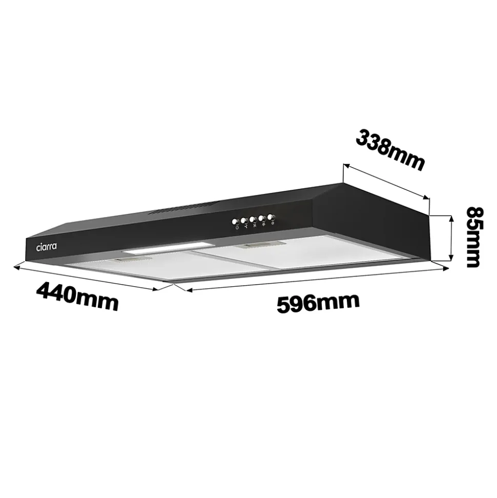 - Modèle Classique: Hotte casquette de 60cm de large, montée contre un mur ou intégrée