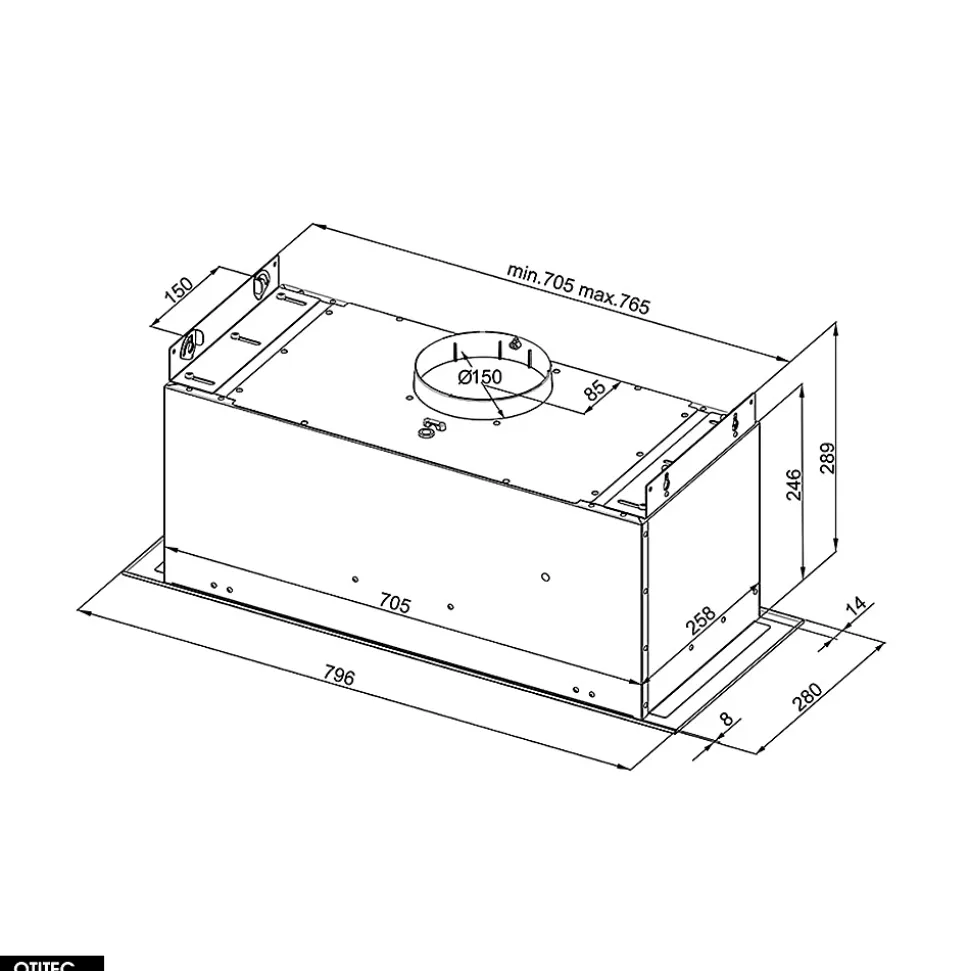 AGENDERO | Hotte Groupe Aspirante Silencieuse◘ Caractéristique principales :• Type : Groupe aspirant• Largeur : 79,6 cm• Hauteur : 25,4 cm• Profondeur : 28 cm• Poids : 9,6 kg• Matière : Acier laqué • Efficacité maximale : 565 m 3 /h• Puissance du moteur : 200 W• Fonctionnement silencieux : min. 44 dB• Niveaux de vitesse : 4 • Classe énergétique : B• Minuterie : non ◘ Inclus avec votre Hotte :• x1 – Filtre Multicouche en Aluminium Renforcé• x1 – Garantie de 2 ANS !La hotte encastrable Agendero se distingue par son design discret et sa performance fiable, idéale pour les cuisines où l’espace est précieux. Avec une capacité d’aspiration maximale de 565 m³/h, elle garantit un air pur tout en s’intégrant harmonieusement dans vos meubles de cuisine.◘ Points forts :• Aspiration efficace : 565 m³/h pour éliminer rapidement les fumées et odeurs.• Design discret : Encastrable dans les meubles, elle prend très peu de place et s’intègre parfaitement.• Fonctionnement polyvalent : Mode extracteur ou absorbeur pour s’adapter à toutes les configurations.• Commandes tactiles Soft Touch : Utilisation intuitive et confortable avec un écran pratique.• Éclairage LED écoénergétique : Bande LED de 5W pour un éclairage optimal du plan de travail.• Matériaux durables : Acier peint pour une finition élégante et résistante.• Fabrication artisanale : Soin du détail irréprochable.La hotte Agendero offre 4 niveaux de puissance, avec un niveau sonore de 48 à 66 dB, pour s’adapter à vos besoins tout en restant relativement silencieuse. En mode absorbeur, elle peut être équipée de filtres à charbon pour éliminer efficacement les odeurs.Garantie 2 ans.siques.