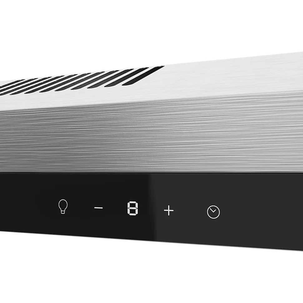 - Élégance et modernité : avec son corps gris en acier inoxydable, sa façade semi-vitrée et son affichage rouge remarquable, cette hotte apporte une touche moderne à votre cuisine.
