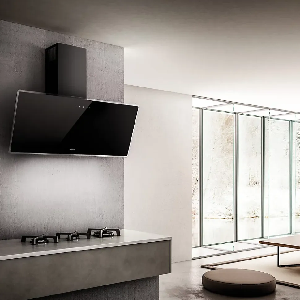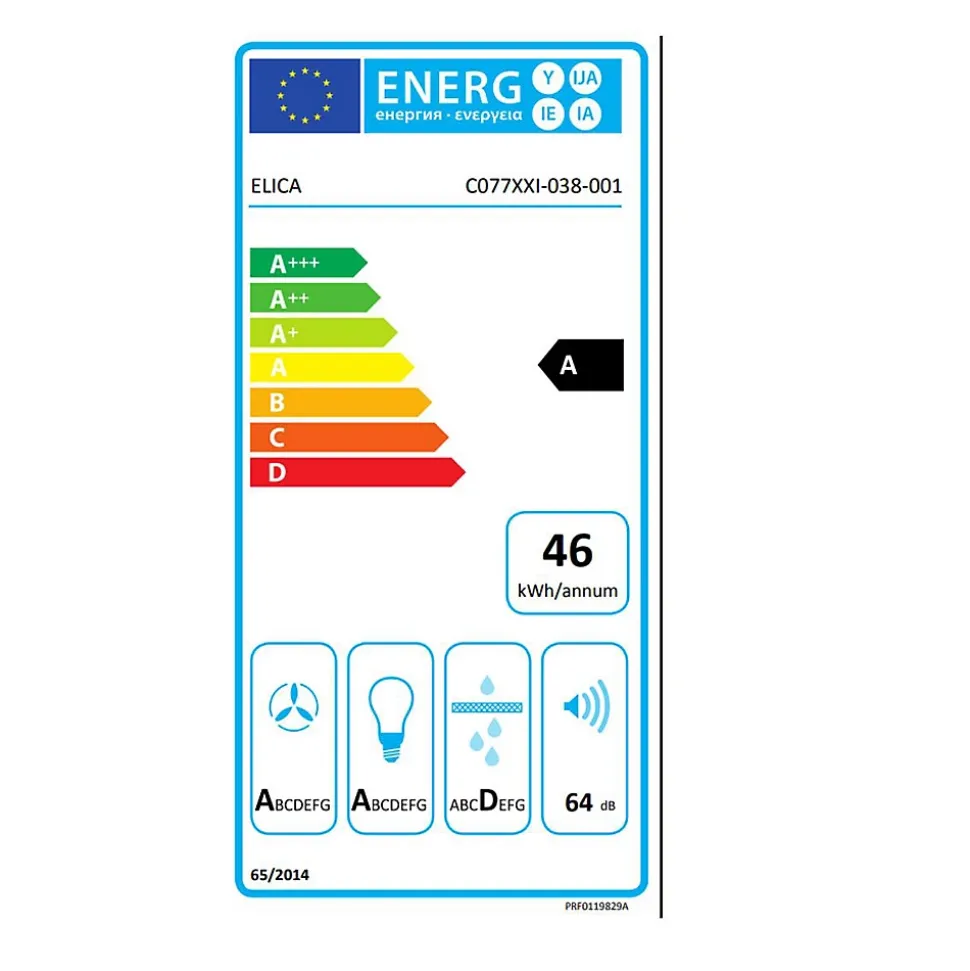 POINTS FORTS : • Hotte aspirante avec extraction • • Débit d’air max 650 (m³/h) • • Niveau sonore max 64 (db) • • Classe énergétique A CARACTÉRISTIQUES : • Commande : Tactile • Eclairage : LED 2 x 1 W • Finition : verre noir • SAV : 2 ans – SAV en France – Pièces, main d’oeuvre et déplacement • Marque : Elica • Coloris : Noir • Classe énergétique : A • Sortie d’air (mm) : 150 • Hauteur (mm) : 1045 • Profondeur (mm) : 188 • Largeur (mm) : 898 • Matière : Verre • Forme de la hotte : pan vertical • Type d’aspiration : extraction • Débit d’air min (m3/h) : 460 • Débit d’air max (m3/h) : 650 • Puissance (w) : 272 • Niveau sonore min (dB) : 52 • Niveau sonore max (dB) : 64 • Bon à savoir : Vendu en version aspirante avec extraction. Pour la version recyclage commander le filtre à charbon CHACC115 (ean 3663019048240). Le conduit et les côtés de la hotte sont noirs. • Poids net (kg) : 15.8