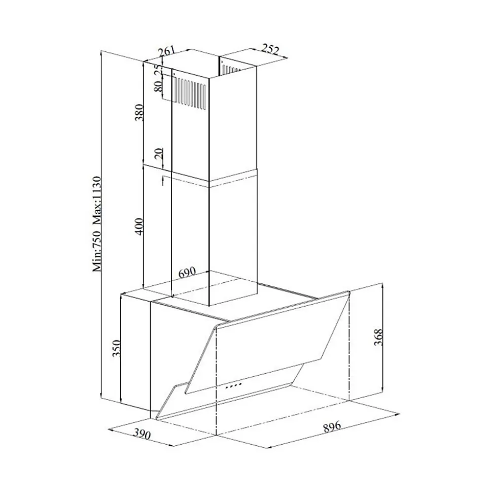 POINTS FORTS : CARACTÉRISTIQUES : • Commande : Tactile • Eclairage : LED 2 x 3 W • Finition : verre blanc • SAV : 5 ans – En France métropolitaine pour toute hotte Silverline achetée à partir du 1er février 2023, sinon 3 ans • Marque : Silverline • Coloris : Blanc • Classe énergétique : A • Sortie d’air (mm) : 150 • Hauteur (mm) : 750 – 1080 • Profondeur (mm) : 390 • Largeur (mm) : 896 • Matière : Verre • Forme de la hotte : pan vertical • Type d’aspiration : extraction • Débit d’air min (m3/h) : 285 • Débit d’air max (m3/h) : 648 • Puissance (w) : 129 • Niveau sonore min (dB) : 46 • Niveau sonore max (dB) : 64 • Bon à savoir : La hotte est vendue en version aspirante avec extraction. Vous pourrez également l’installer en reyclage, le filtre à charbon est inclus. • Poids net (kg) : 15.4