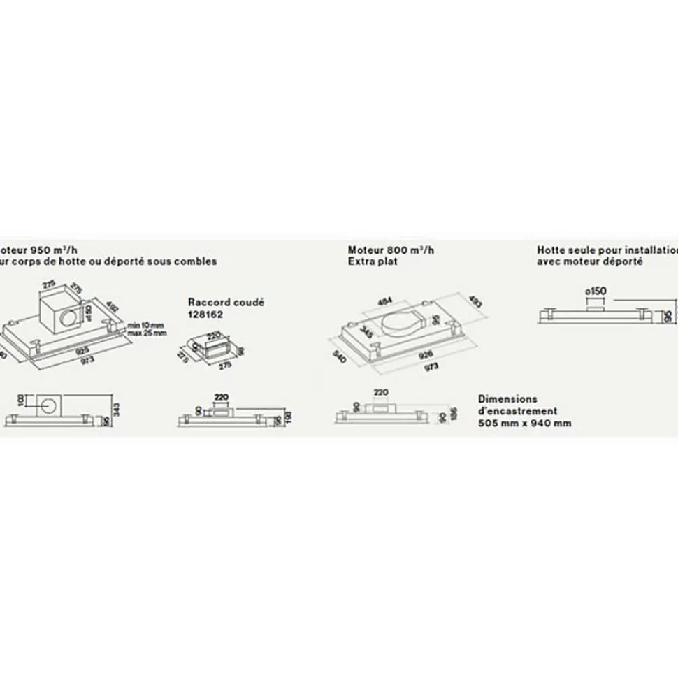 Hotte de plafond sans moteur 90cm blanc/verre Falmec – Hotte de plafond sans moteur Nuvola 90 Falmec CORNUVO3412. Attention, ce plafonnier est vendu sans moteur. Il faut commander en plus le pack moteur souhaité en fonction de son installation (moteur sur corps, moteur déporté sous comble ou moteur extérieur). Commandes électroniques rétroéclairées. Aspiration périmétrale avec panneau anti-bruit nouvelle génération. Filtres à graisse métalliques lavables au lave-vaisselle. En mode recyclage, vous devez impérativement monter un kit de recyclage (recyclage horizontal : référence KACL939 composé d’un filtre à charbon actif (référence KACL928 pour le remplacement) et d’un système d’accroche / recyclage vertical : référence RECYPLAFV composé d’un filtre à charbon actif (référence FILTREDOWND pour le remplacement) et d’un système d’accroche. Dynamic LED light : éclairage LED variable en température (de 2700K à 5600K). – Type de produit : Hotte de plafond sans moteur.Gamme : Nuvola 90.Mode de fonctionnement : Evacuation ou recyclage (filtre à charbon en option).Moteur intégré : Non.Hotte connectée : Non.Type de commandes : Electroniques.Nbre de vitesse(s) : 4.Vitesse intensive : Oui.Type d’éclairage : LED à température réglable.Niveau sonore mini (dB) : 52.Aspiration périphérique : Oui.Autres : Hotte est vendue sans le moteur. Il faut commander le pack moteur souhaité en fonction de son installation.Télécommande : Oui.Largeur (cm) : 97.3.Profondeur (cm) : 54.Couleur : Blanc.Finition / Nuance : VerrePoids (kg) : 23.