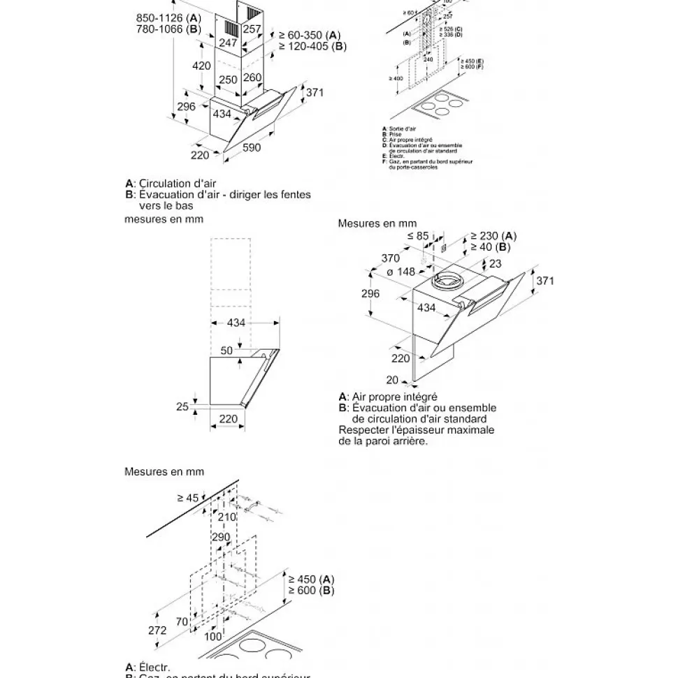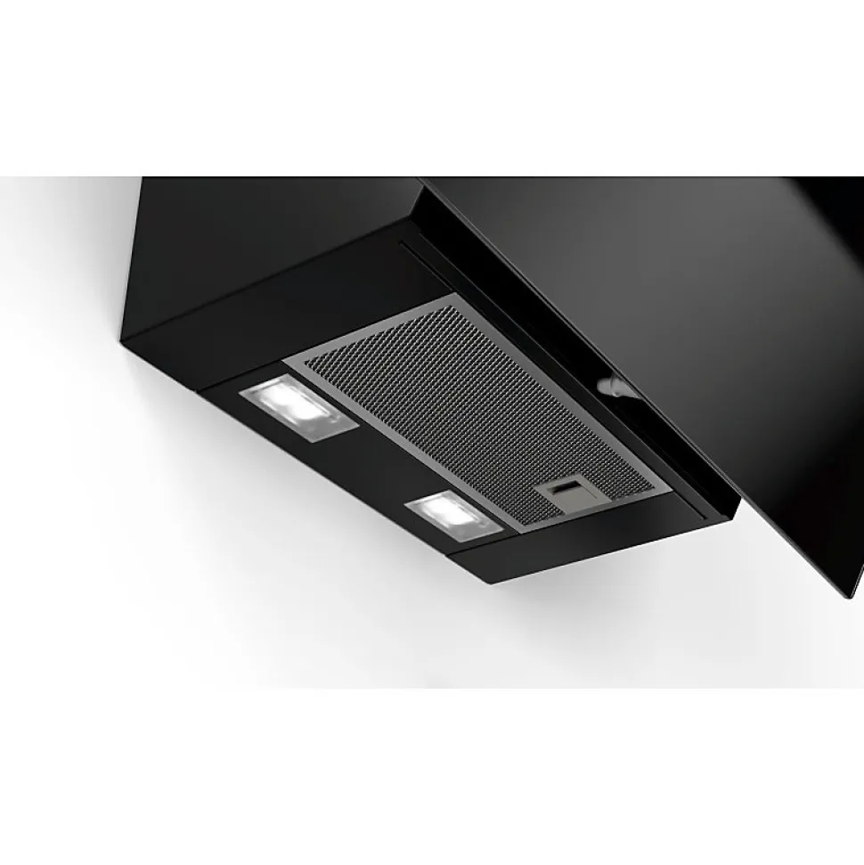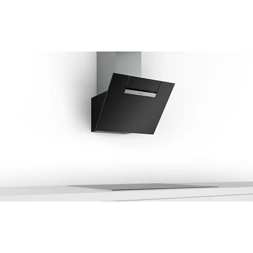 Hotte décorative inclinée 60cm 60db 399m3/h Bosch – Hotte décorative inclinée Série 2 Bosch DWK67EM60 avec éclairage LED à faible consommation qui fournit une lumière blanche idéale pour votre zone de cuisson. Vitesse intensive : élimine efficacement et rapidement les odeurs. – Type de produit : Hotte décorative inclinéeGamme : Série 2.Type : Hotte murale inclinée.Mode de fonctionnement : Evacuation ou recyclage (filtre à charbon en option).Moteur intégré : Oui.Hotte connectée : Non.Type de commandes : Electroniques.Nbre de vitesse(s) : 4.Vitesse intensive : Oui.Type d’éclairage : LED 2 x 3 W.Consommation d’énergie annuelle (AEC hotte) en kWh/an : 59.Classe d’efficacité énergétique : B.Efficacité fluidodynamique (FDE hotte) : 27.Classe d’efficacité fluidodynamique : B.Efficacité lumineuse (LE hotte) en lux/watt : 32.5.Classe d’efficacité lumineuse : A.Efficacité de filtration des graisses (%) : 80.Classe d’efficacité de filtration des graisses : C.Débit d’air (en m3/h) à la vitesse minimale en fonctionnement normal (mode intensif ou »boost » exclu) : 245.Débit d’air (en m3/h) à la vitesse maximale en fonctionnement normal (mode intensif ou »boost » exclu) : 399.Débit d’air (en m3/h) à la vitesse maximale en mode intensif ou »boost » : 669.Emissions acoustiques de l’air pondérées de la valeur A (en dB) à la vitesse minimale en fonctionnement normal : 48.Emissions acoustiques de l’air pondérées de la valeur A (en dB) à la vitesse maximale en fonctionnement normal : 60.Emissions acoustiques de l’air pondérées de la valeur A (en dB) à la vitesse maximale en mode intensif ou »boost » : 69.Consommation d’énergie en mode »veille » (P s) en watts : 0.24.Aspiration périphérique : Oui.Autre(s) fonction(s) : Positions intensives avec retour automatique au bout de 6 min.Système filtre(s) : 2 filtres à graisses
