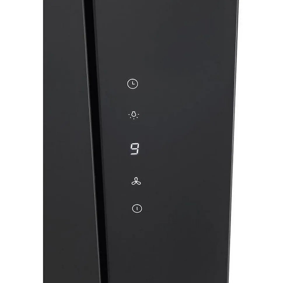 Hotte décorative – Largeur 90 cm – 3 vitesses – Commandes électroniques sensitives – Aspiration périphérique – Filtre à graisse aluminium lavable – Filtre à charbon fourni (référence CF115) – Éclairage LED – Évacuation en option : pour cela, commandez le kit cheminée référence ATC-252X avec adaptateur sortie moteur – Sortie 8 120/150 mm – Finition inox et verre noir.