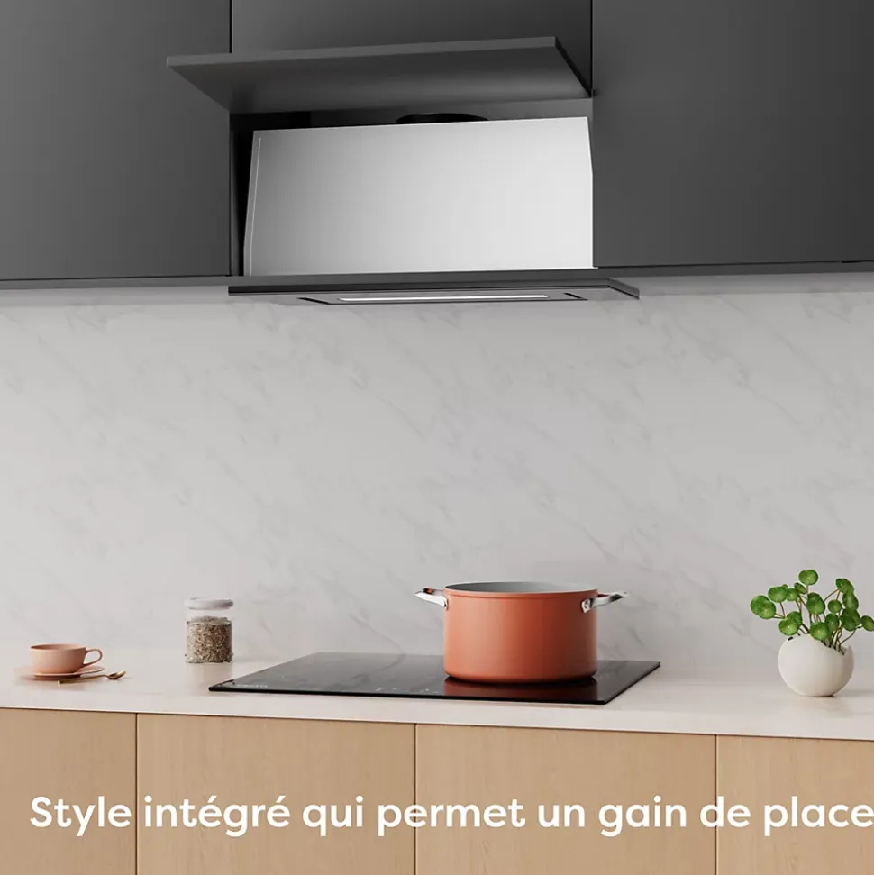 Hotte aspirante encastrable 60 cm – Économique, Performante et SilencieuseDécouvrez la hotte aspirante encastrable de 60 cm, spécialement conçue pour répondre aux besoins des cuisines françaises modernes. Classée A en efficacité énergétique, elle consomme peu d’électricité tout en offrant une aspiration puissante jusqu’à 460 m³/h. Grâce à ses 3 vitesses de fonctionnement, elle élimine efficacement les fumées, vapeurs et odeurs tout en restant extrêmement silencieuse (63 dB à pleine puissance).