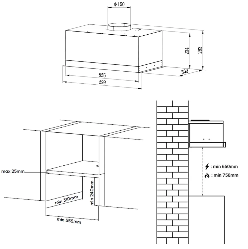 - Puissance d’aspiration élevée : Une aspiration puissante avec un débit d’air maximum atteignant 650 m³/h, idéal pour éliminer efficacement les fumées et les odeurs de cuisine.