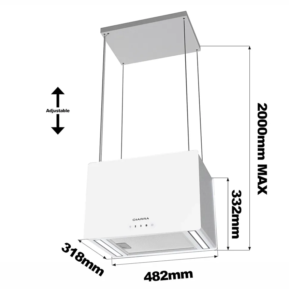 La hotte îlot CIARRA CD4850S de 48 cm, connectée en Wi-Fi, propose un contrôle intelligent via l’application Smart Life et un panneau tactile. Classée A+++, elle offre un débit max de 700 m³/h et un fonctionnement silencieux.
