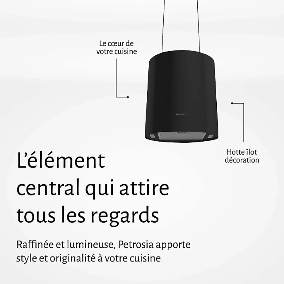 Hotte îlot PETROSIA BK – Marque BELDEKO – Coloris noir – Inox peint
