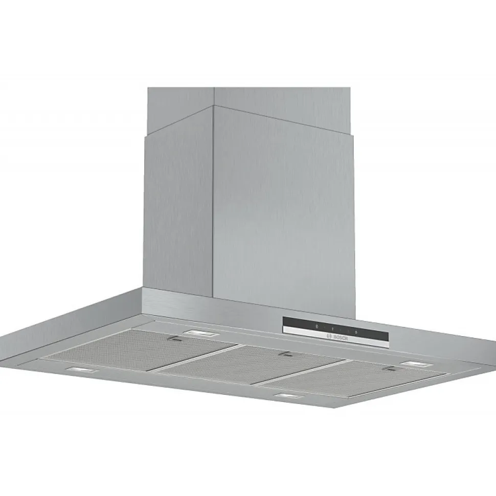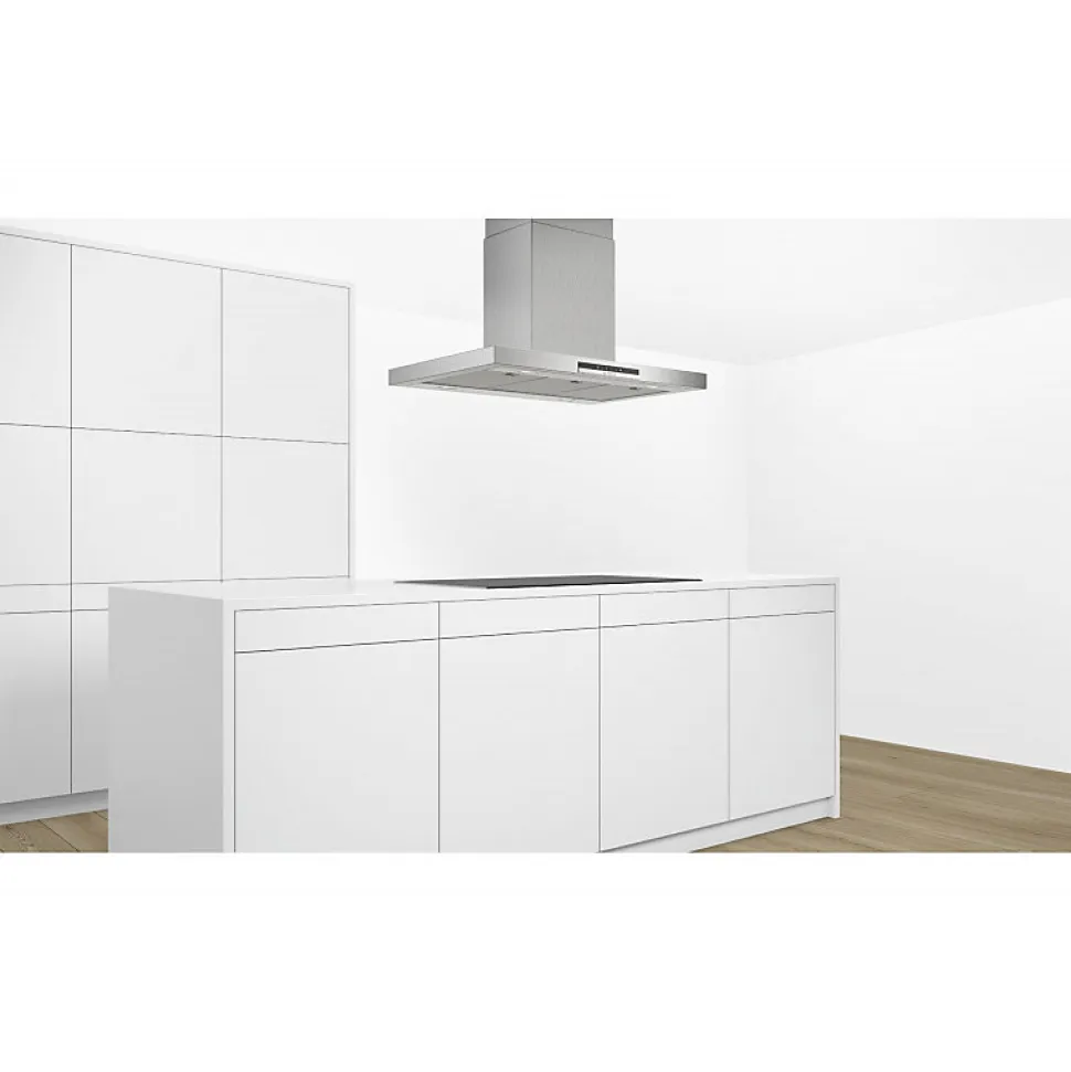 Hotte îlot Bosch DIB97IM50 en acier inoxydable de 90 cm avec éclairage LED, 4 vitesses, extraction maximale de 754 m³/h, facile à nettoyer, commande tactile, idéale pour grandes cuisines modernes.