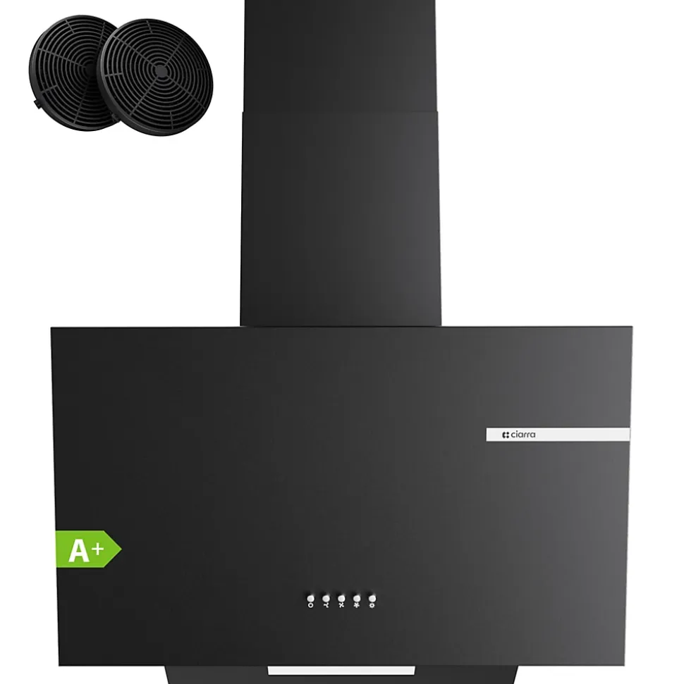 Hotte inclinée 60cm classe a+ 600m3h 3 vitesses évacuation ou recyclage noir CD6765AB CiarraHotte aspirante murale inclinée 60 cm – Puissance, silence et économie d’énergieDécouvrez la hotte aspirante inclinée murale 60 cm idéale pour les cuisines modernes. Classée énergie A+, elle garantit une consommation maîtrisée tout en offrant une aspiration puissante jusqu’à 600 m³/h pour éliminer efficacement fumées, odeurs et graisses.