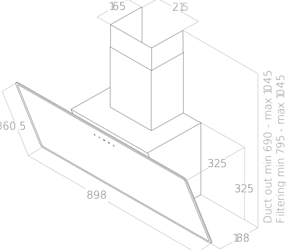 Hotte inclinée en verre noir L. 90 cm Shire Elica