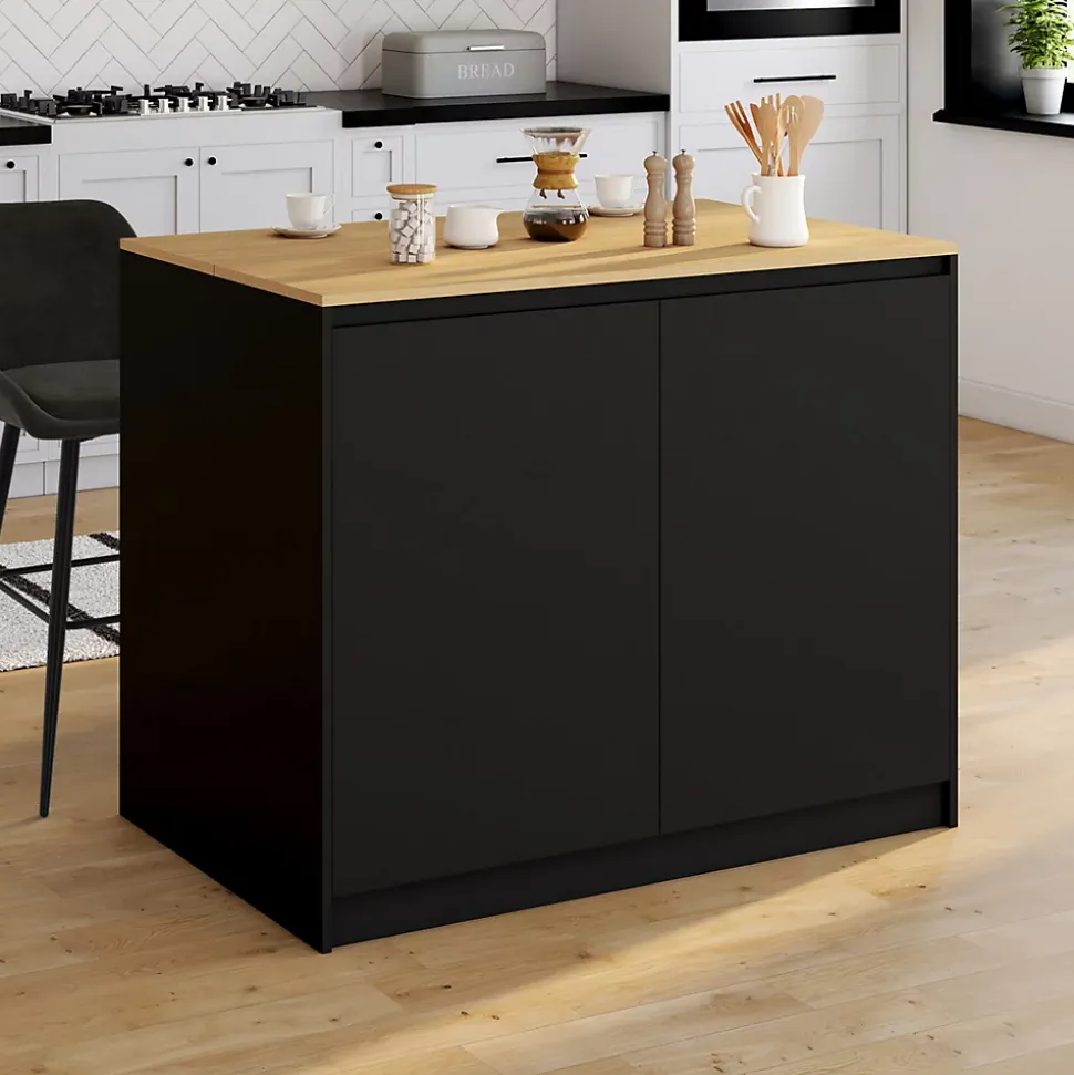 Apportez une touche contemporaine et fonctionnelle à votre cuisine avec cet îlot central avec tablette relevable.Conçu pour optimiser l’espace et s’adapter à vos besoins du quotidien, cet îlot malin combine élégance, praticité et convivialité.La tablette relevable offre un plan de travail modulable qui se transforme en coin repas ou bar en un clin d’oeil.Fermé, il se fond parfaitement dans votre cuisine ; ouvert, il devient un espace central pour partager un café, cuisiner ou travailler.Son format compact, peu encombrant, facilite la circulation tout en évitant les pas inutiles au quotidien dans votre pièce de vie. Il structure l’espace de votre cuisine ! Parfait pour les pièces de vie ouvertes et aérées !Cet îlot central de forme rectangulaire classique est idéalement conçu pour recevoir 2 couverts grâce à son renfoncement latéral. Ambiance cosy pour des petits-déjeuners à 2 !Pratique et fonctionnel, il dispose de 2 portes aux jolies poignées noires, donnant sur 1 compartiment doté d’une étagère intermédiaire ajustable en hauteur pour organiser votre rangement !Sa structure en PB (panneaux de particules) lui apporte stabilité et robustesse.Tantôt coin repas, tantôt coin cuisine, avec sa triple fonction table haute/plan de travail/meuble de rangement, il vous fera gagner du temps et de l’espace, et apportera un look contemporain à votre intérieur !Optez sans tarder pour cet îlot tendance à la fois fonctionnel et décoratif !Dimensions de l’îlot central de cuisine CESARDimensions globales : Longueur 110 cm x largeur 70 cm x Hauteur 90 cmDimensions globales (plateau relevé) : L.110 x l.96 x H.104,5 cmDimensions du côté ouvert : L.107,5 x l.35 x H.74,5 cmDimensions étagère inférieure : L.107,5 x l.32 cmEtagère ajustable sur 3 positionsEpaisseur du plan de travail : 1,5 cmMatériaux : Panneaux en particules de bois mélaminésNettoyage rapide et entretien facile avec chiffon humide douxÀ monter soi-mêmeProduit vendu seul, sans les tabouretsDécouvrez également l’ensemble de