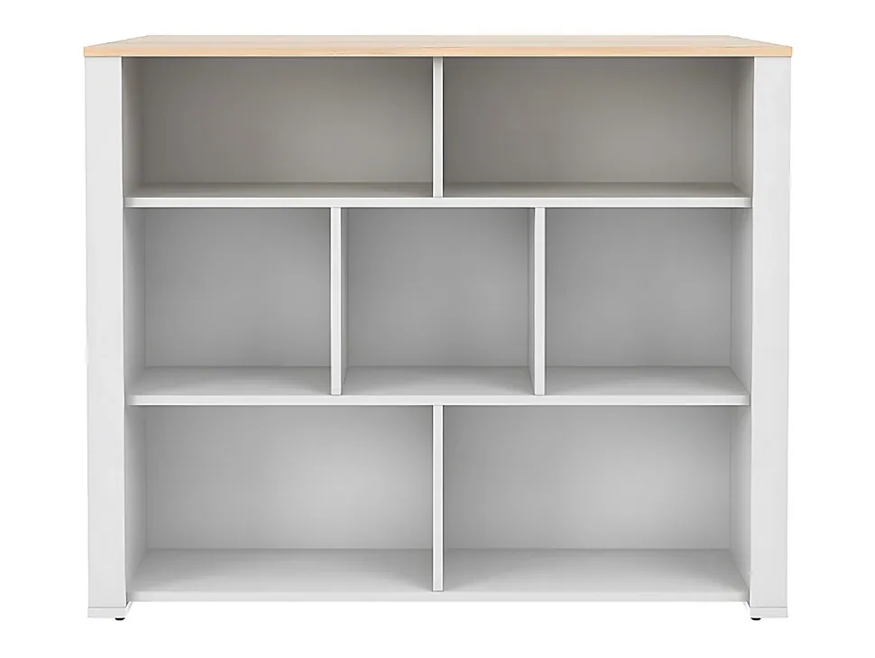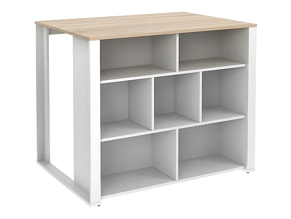 - Ilot central de cuisine avec 7 niches OPOLE – Matière : Panneau de particules – Coloris : Blanc et naturel – Style : Intemporel – Dimensions : L110,2 x P80 x H90,5 cm – Partagez des moments de convivialité avec l’îlot central de cuisine OPOLE !