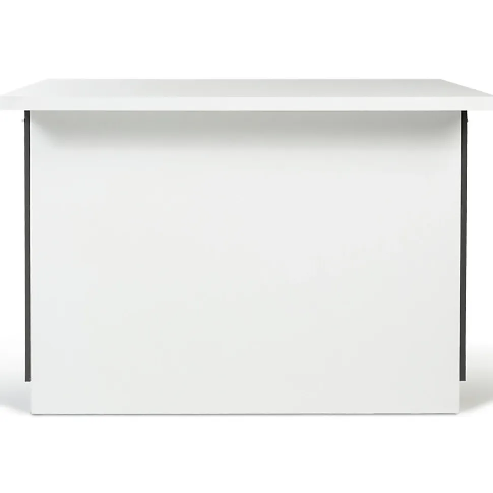 L’espace de votre intérieur, de votre cuisine sera optimisé grâce à notre îlot central avec plan de travail et rangements incorporés en bois coloris blanc et gris !Le design moderne de cet îlot central, ses lignes droites et épurées, ses couleurs sobres tout en contraste, et ses finitions mates lui permettent de s’adapter idéalement à tout type d’intérieur ! Il conférera un aspect net et rangé à votre cuisine !Son format généreux néanmoins compact, peu encombrant, facilite la circulation tout en évitant les pas inutiles au quotidien dans votre pièce de vie. Il structure l’espace de votre cuisine ! Parfait pour les pièces de vie ouvertes et aérées!Cet îlot central de forme rectangulaire classique est idéalement conçu pour recevoir 2 couverts. Ambiance cosy pour des petits-déjeuners à 2 !Son plateau épaisseur 3 cm offre un solide plan de travail large et profond pour poser plats, bouteilles, etc. Ce plan de travail débordant sur un côté a pour avantage de servir de mange-debout et de pouvoir ainsi manger sur le pouce debout ou sur un tabouret de bar !Pratique et fonctionnel, il constitue une véritable solution de rangement rapide pour l’aménagement des petits espaces car il dispose de 2 portes latérales à chaque extrémité aux jolies poignées argentées façon chrome, donnant sur 2 compartiments dotés d’une étagère intermédiaire pour organiser votre rangement ! Discrets, cachés sous le plan de travail, ils représentent un véritable gain de place !Vous bénéficiez ainsi de nombreux espaces de rangement pour vos ustensiles, couverts, vaisselle, bouteilles et condiments ! De plus, vous les conservez à portée de main et vous optimisez l’espace !La structure en PB (panneaux de particules, épaisseur 1,5 cm) lui apporte stabilité et robustesse.Tantôt coin repas, tantôt coin cuisine, avec sa triple fonction table haute/plan de travail/meuble de rangement, il vous fera gagner du temps et de l’espace, et apportera un look contemporain à votre intérieur !Optez sans tarder pour cette