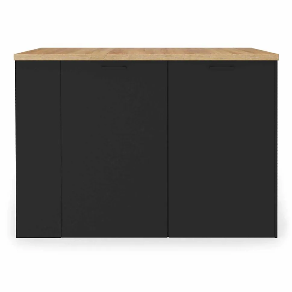 L’espace de votre intérieur, de votre cuisine sera optimisé grâce à notre îlot central bois noir avec plan de travail et étagères assorties façon hêtre !Le design moderne de cet îlot central, ses lignes droites et épurées, ses couleurs sobres tout en contraste, et ses finitions mates lui permettent de s’adapter idéalement à tout type d’intérieur ! Il conférera un aspect net et rangé à votre cuisine !Son format généreux mais néanmoins compact, peu encombrant, facilite la circulation tout en évitant les pas inutiles au quotidien dans votre pièce de vie. Il structure l’espace de votre cuisine ! Parfait pour les pièces de vie ouvertes et aérées !Cet îlot central de forme rectangulaire classique est idéalement conçu pour recevoir 2 couverts grâce à son renfoncement latéral. Ambiance cosy pour des petits-déjeuners à 2 !Son plateau d’une épaisseur de 3 cm offre un solide plan de travail large et profond pour poser plats, bouteilles, etc.Pratique et fonctionnel, il dispose de 2 portes latérales aux jolies poignées noires, donnant sur 2 compartiments dotés d’une étagère intermédiaire ajustable en hauteur pour organiser votre rangement !Sur le côté, les 3 étagères latérales seront parfaites pour garder à portée de main condiments, verres ou encore bouteilles. De quoi optimiser au maximum votre espace !Sa structure en PB (panneaux de particules) épaisseur 1,5 cm lui apporte stabilité et robustesse.Tantôt coin repas, tantôt coin cuisine, avec sa triple fonction table haute/plan de travail/meuble de rangement, il vous fera gagner du temps et de l’espace, et apportera un look contemporain à votre intérieur !Optez sans tarder pour cet îlot tendance à la fois fonctionnel et décoratif !Dimensions de l’îlot central de cuisine TIBODimensions globales : Longueur 120 cm x largeur 70 cm x Hauteur 90 cmDimensions intérieur placard : L. 48,5 x l. 31,5 x H. 79,6 cmEtagère ajustable en hauteur à l’intérieurEtagères latérales : 62 x 18,5 x 25,4 cmEspace pour le côté bar : 98 x 30 x 87 cmPoign