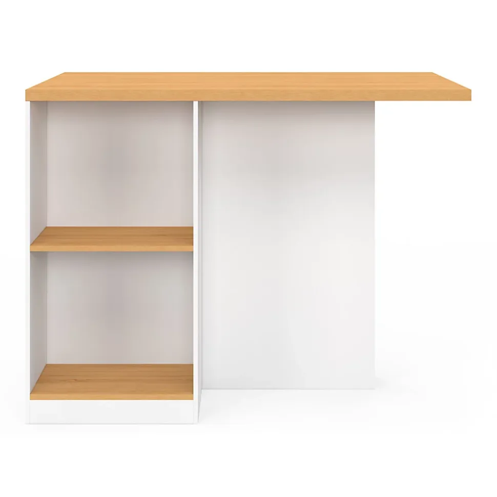 N’attendez plus et craquez pour cet îlot central blanc et bois qui deviendra l’élément phare de votre pièce avec son allure à la fois chaleureuse et moderne !Avec ses dimensions généreuses, cet îlot propose un grand plan de travail de 3 cm d’épaisseur, parfait pour cuisiner ou bien partager un moment en famille ou entre amis autour d’un repas.Son plateau débordant permet d’y glisser des tabourets de bar, transformant ce meuble en un véritable espace repas ou coin snack, à la fois pratique et esthétique.Côté rangement, cet îlot ne manque pas de ressources : il dispose d’un grand placard fermé avec 1 étagère et 1 tiroir, parfait pour y stocker vaisselle, ustensiles ou provisions.Au dos, vous trouverez 2 niches pour y ranger vos livres, vaisselles et autres accessoires de cuisine.Sur le côté, vous trouverez 4 étagères range bouteilles? idéales pour avoir à porter de main et stocker vos bouteilles.Sa structure en panneaux de particules et MDF lui apporte stabilité et robustesse.Pensé pour être pratique, fonctionnel et accueillant, cet îlot bicolore est la pièce idéale pour transformer votre cuisine en lieu de vie convivial et bien organisé.Dimensions de l’îlot central TINO 4 personnes bois blanc avec plan de travail façon hêtreDimensions globales : Longueur 120 cm x largeur 70 cm x Hauteur 90 cmDimensions intérieures placard : L. 44 x l. 33 x H. 51 cmDimensions intérieures tiroir : L.39,5 x l.28 x H.11 cmDimensions niches : L.44 x l. 33,3 x H.39 cmDimensions niche colonne (bas) : L.10,5 x l.49 x H.39 cmDimensions niche colonne (haut) : L.10,5 x l.49 x H.14cmMatériaux : Panneaux de particules mélaminés et MDF Coloris : bois et blancÀ monter soi-mêmeDécouvrez également l’ensemble de nos meubles et éléments de cuisine sur notre boutique en ligne !