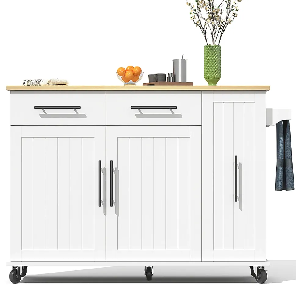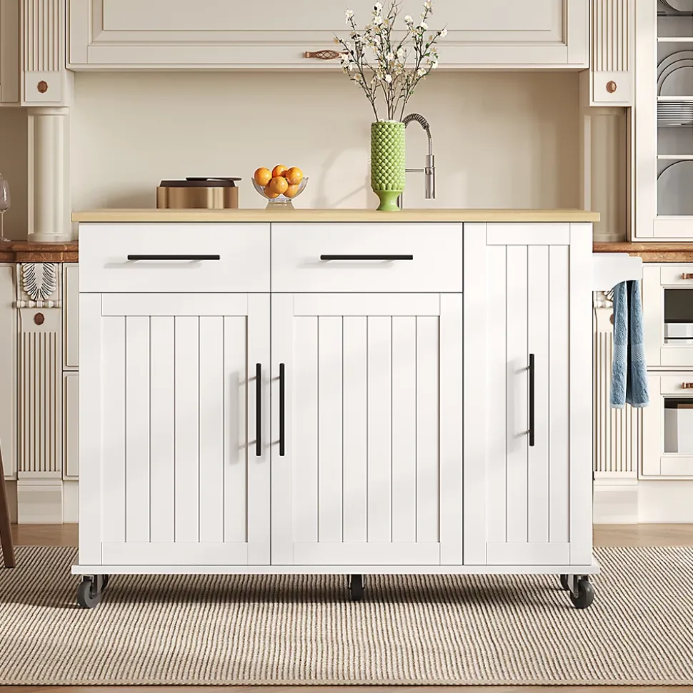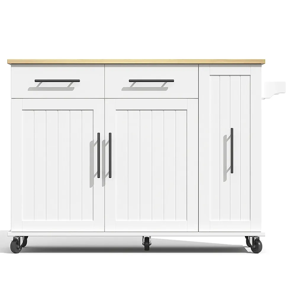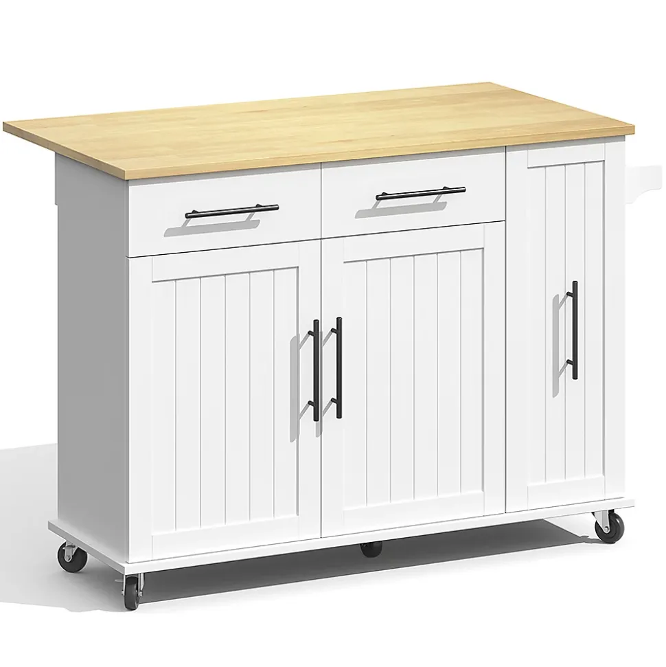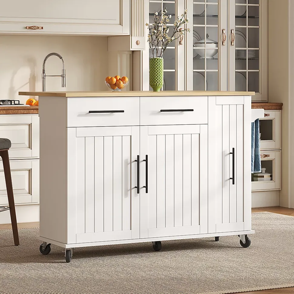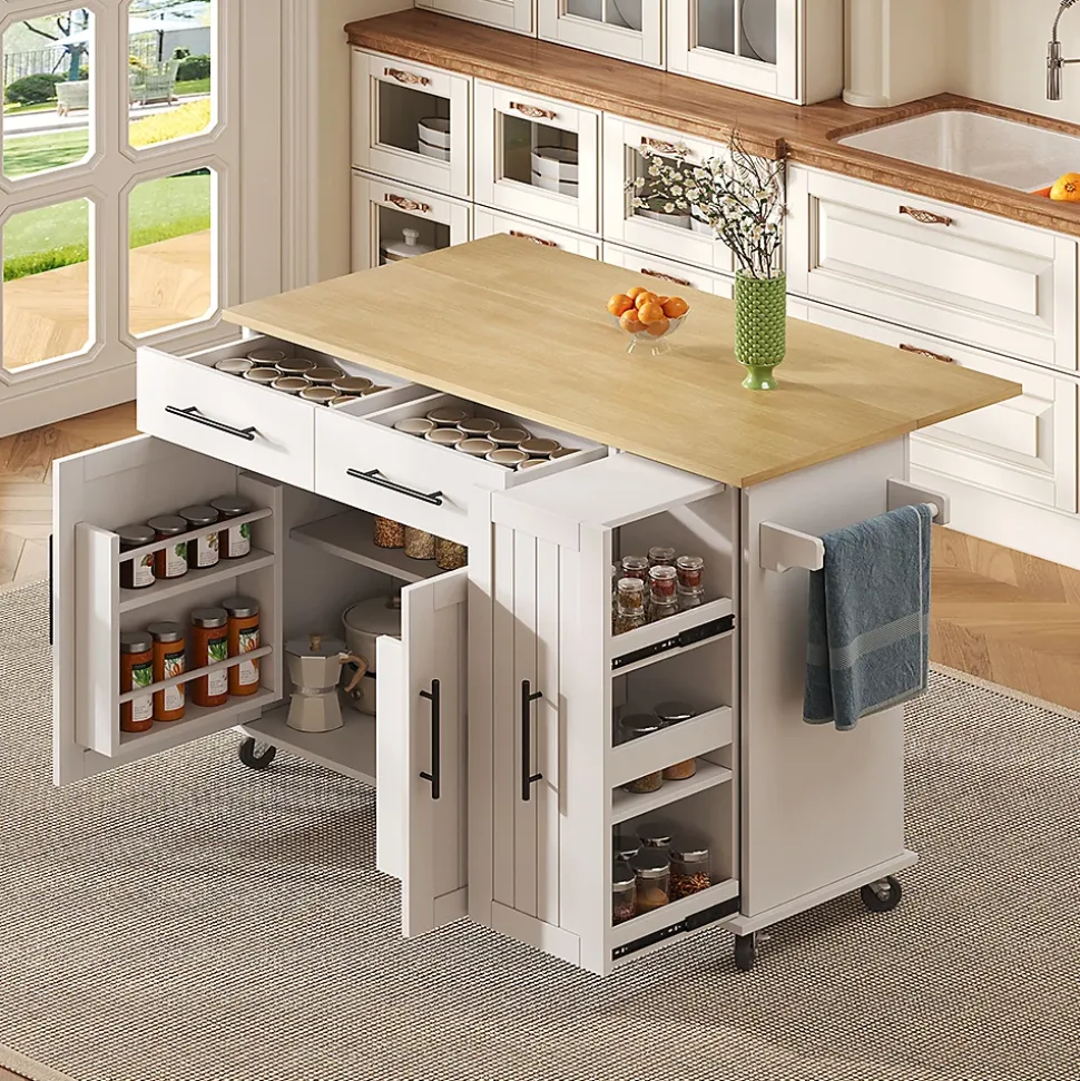 SpécificationsLieu d’origine : ChineCouleur principale : Blanc + naturelMatériau principal : MDFUtilisation : CuisineTeinte du bois : NaturelLargeur de l’îlot : Moyenne (40-55 pouces)Type d’îlot : Chariots de cuisineForme de l’îlot : RectangulaireDimensions du produitLongueur assemblé (cm) : 120,00Largeur assemblé (cm) : 40,00Hauteur assemblé (cm) : 90,00Poids du produit (kg) : 51,50Dimensions du colisSous-article 1 : 94,62 * 51,44 * 19,69 cm 28,1 kgSous-article 2 : 134,62 * 47,63 * 14,61 cm 27,65 kgCaractéristiques du produit✅[Organisateur à 3 niveaux coulissants] Cet îlot de cuisine est livré avec un organiseur de rangement coulissant à 3 niveaux très pratique. La largeur de chaque niveau est identique, mais la hauteur varie. De plus, l’étagère du niveau intermédiaire peut être réglée à différentes hauteurs pour répondre à vos différents besoins de rangement et vous permettre de classer et de ranger des objets de différentes tailles.✅[Étagères de rangement internes] Inspiré du design de la porte du réfrigérateur, le chariot de cuisine dispose d’étagères de rangement internes. Ces étagères maximisent l’utilisation de l’espace et optimisent la capacité de rangement, vous évitant ainsi de manquer d’espace à l’intérieur. Il est parfait pour la cuisine, la salle à manger et le salon.✅[Tablette rabattable pratique] Le plan de travail de cet îlot de cuisine est équipé d’une tablette rabattable. Si vous manquez d’espace, vous pouvez l’ouvrir pour obtenir plus de surface de travail, ce qui vous permet de poser plus d’objets sur le comptoir et d’augmenter l’espace de rangement. Bien sûr, vous pouvez également la replier lorsque vous n’en avez pas besoin et la poser contre un mur ou dans un coin pour la ranger.