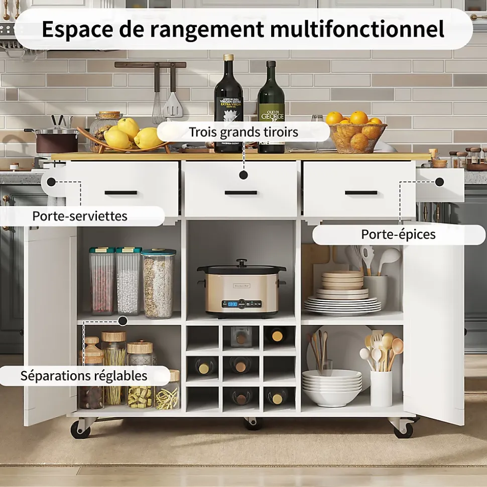Caractéristiques du produitCe meuble comprend 3 tiroirs, 2 portes et un compartiment de rangement pour les ustensiles de cuisine. Sa construction flexible et robuste garantit une conservation optimale des aliments, essentielle dans un contexte de plus en plus répandu. Gain de place : idéal pour les traiteurs et les restaurants, ce meuble est également un choix parfait pour les chefs de renom.Spécifications techniques :Dimensions déplié : 124 x 65 x 91,5 cm (Longueur x Largeur x Hauteur)Dimensions plié : 104 x 40 x 91,5 cm (Longueur x Largeur x Hauteur)Poids : 46 kgMatériau : Panneaux de fibres de moyenne densité (MDF)Charge maximale supportée : 60 kgQuantité : 2