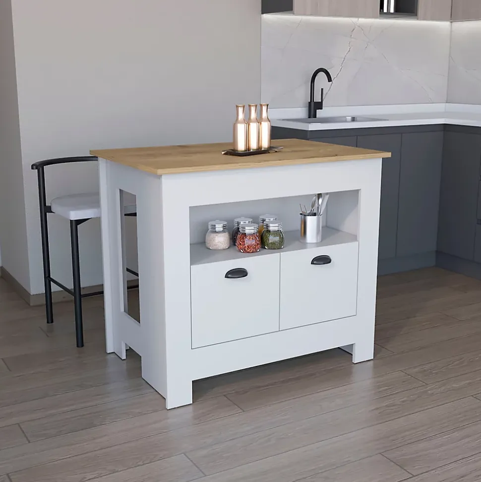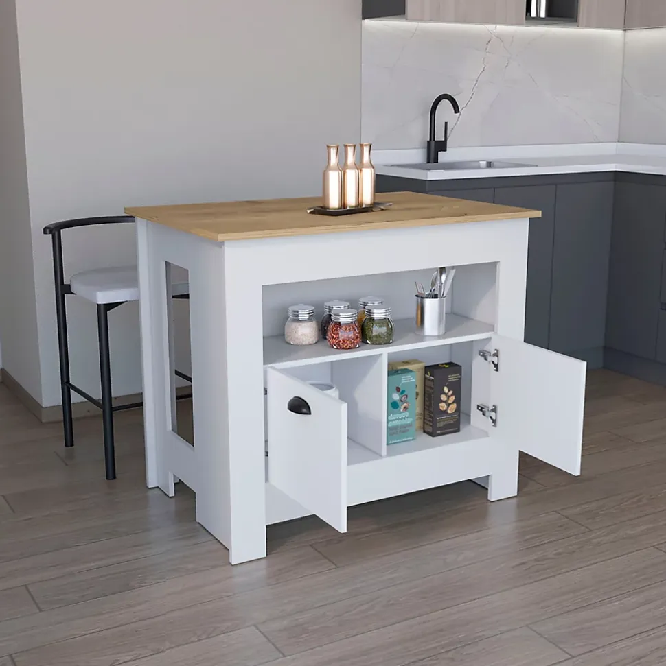 Organisez votre espace avec style grâce à l’îlot de cuisine Arlet. Cet îlot polyvalent et élégant est la solution parfaite pour répondre à vos besoins de rangement dans n’importe quelle cuisine. Avec un grand espace en dessous et un design contemporain, l’îlot de cuisine Arlet allie fonctionnalité et esthétique pour créer une pièce maîtresse étonnante dans votre décor. Que ce soit pour ranger vos ustensiles de cuisine, vos ingrédients ou vos petits appareils électroménagers, cet îlot offre un espace généreux et élégant pour répondre à tous vos besoins.Dimensions de l’îlot :Hauteur : 89.9 CMLargeur : 103 CMLongueur : 70 CMGarantie : 1 an de garantie sur les pièces en bois 1 an de garantie sur les pièces de quincaillerie dont la date de fabrication est indiquée sur le numéro de lot imprimé sur la boîte du produit. Autres détails : Ce produit ne comprend pas d’éléments décoratifs ou de fond. Vérifiez que la boîte est en bon état – le produit est bien emballé – et vérifiez à l’aide du manuel que les pièces correspondantes ont été incluses (nécessite un assemblage complet).