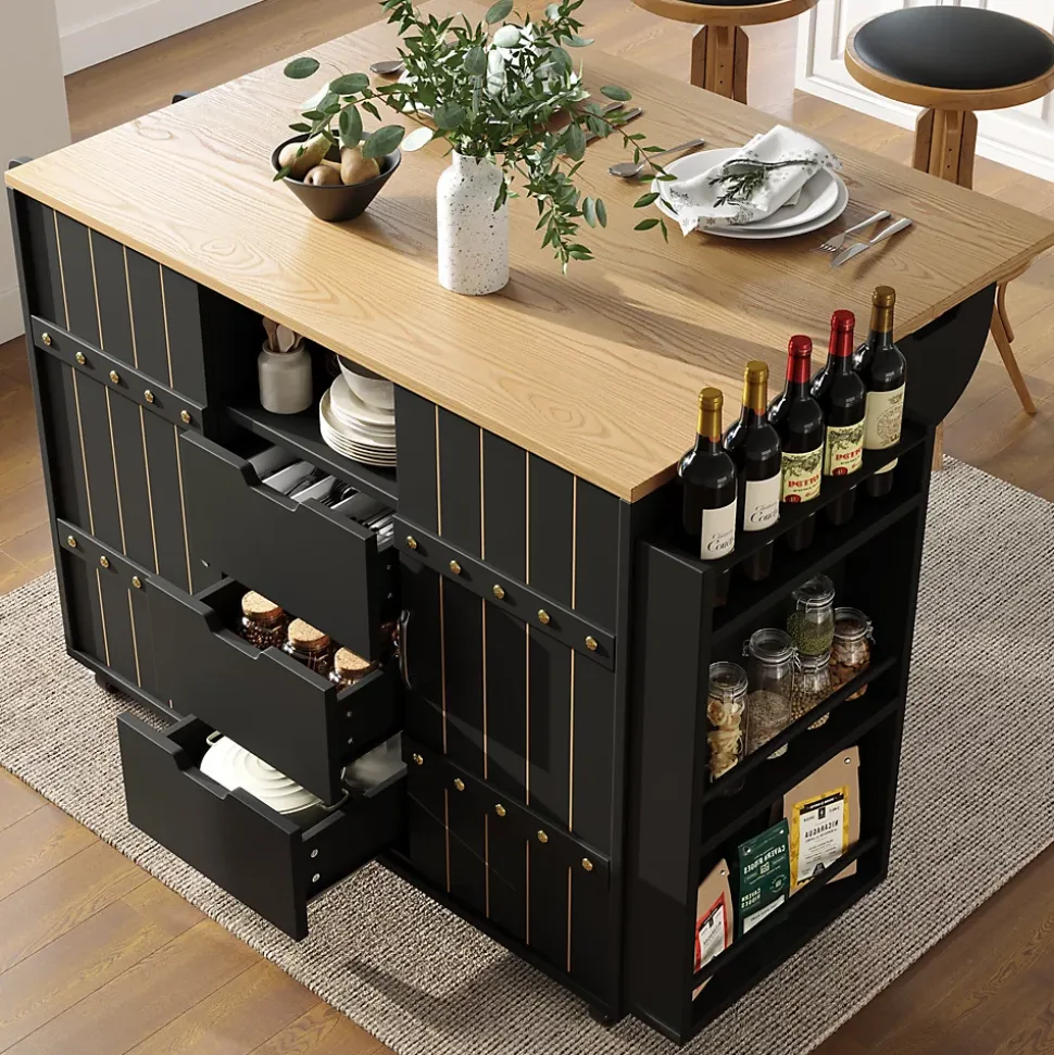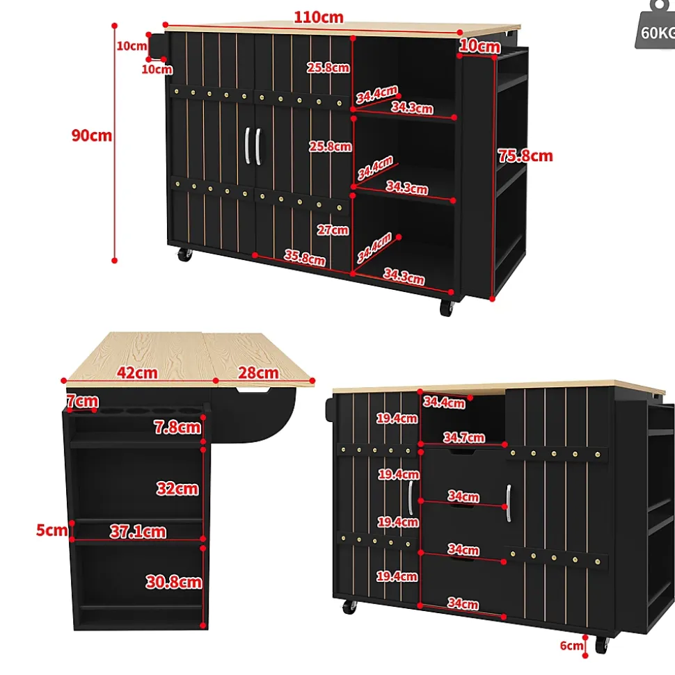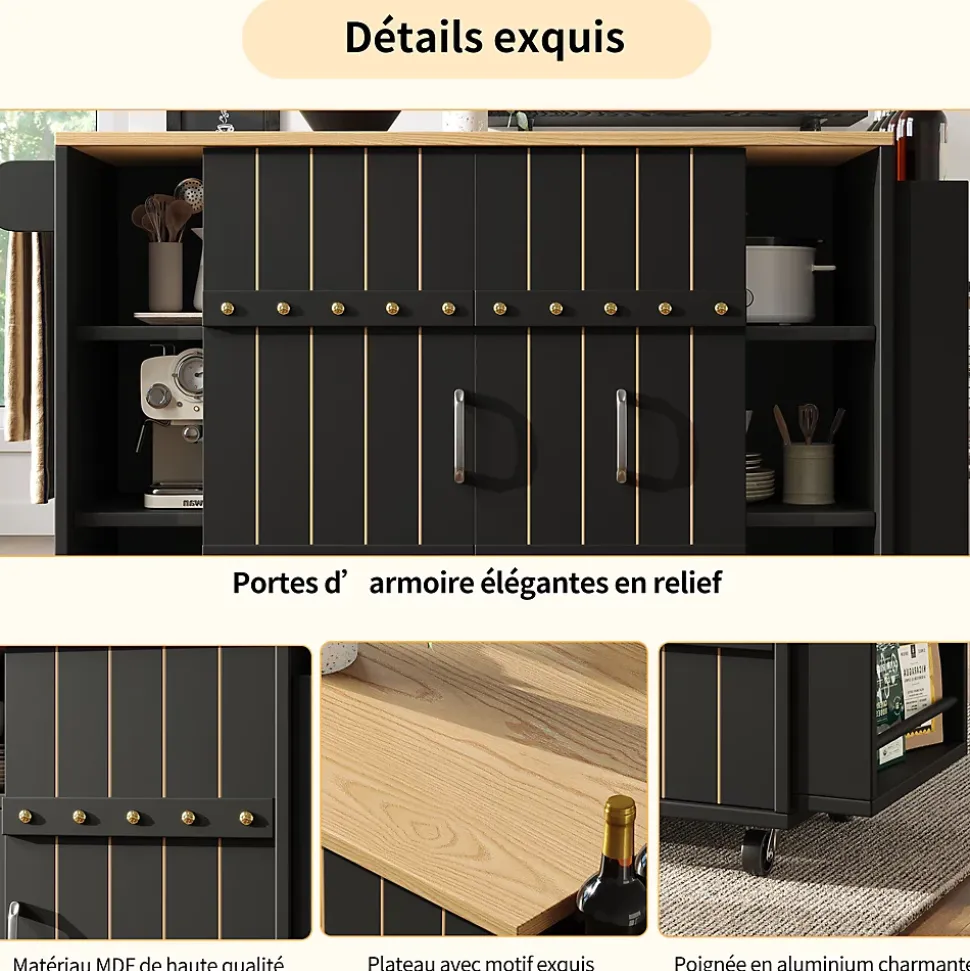 - 【Design Moderne et Élégant】 Ce meuble présente un design moderne et épuré, avec des lignes nettes et une finition noire élégante. Il s’intègre parfaitement dans tous les types d’intérieurs, que ce soit une cuisine, un salon ou un bureau, apportant une touche contemporaine à votre espace.