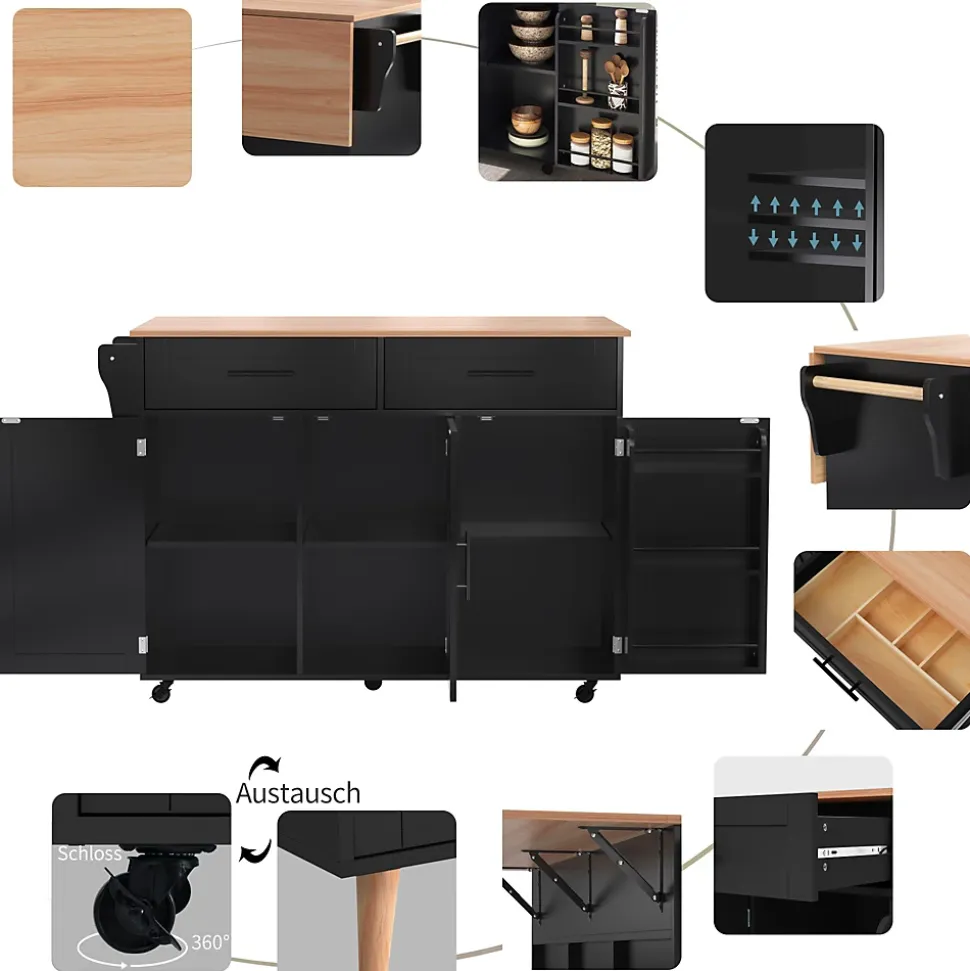 ▶ ▶ Détails ▶────────────────● Type de produit : Chariot de cuisine● Dimensions : 129×71×91.5 cm● Matériau : Panneau de particules● Couleur : Noir● Nombre de tiroirs : 2● Nombre de roulettes : 4● Nombre de pieds en bois massif : 5● Porte-serviettes : 1● Capacité de la tablette : 40 kg● Capacité de la tablette rabattable : 10 kg● Capacité du rayon : 20 kg● Capacité du tiroir : 10 kg● Nombre recommandé de personnes : 2● Temps de montage : 40-80 minutes● Nombre de colis : 2► Remarques ►※ Ce produit est livré en 2 colis. Ils peuvent ne pas arriver en même temps. Merci de patienter.※ En raison des mesures manuelles, une tolérance de 2-3 cm peut se produire.※ En raison des conditions d’éclairage, la couleur réelle peut différer légèrement de l’image du produit. Veuillez vous référer au produit reçu.※ Si vous avez des questions pendant l’installation, veuillez nous contacter dès que possible.