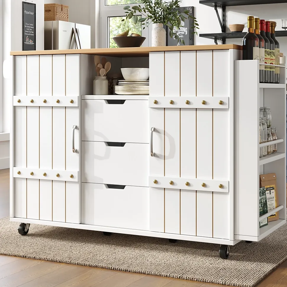- 【Rangement optimisé】 Avec trois tiroirs, un étagère latérale et des planches ajustables, ce meuble offre une organisation pratique pour épices, couverts, boissons et petits ustensiles, facilitant l’accès rapide et l’ordre dans la cuisine.
