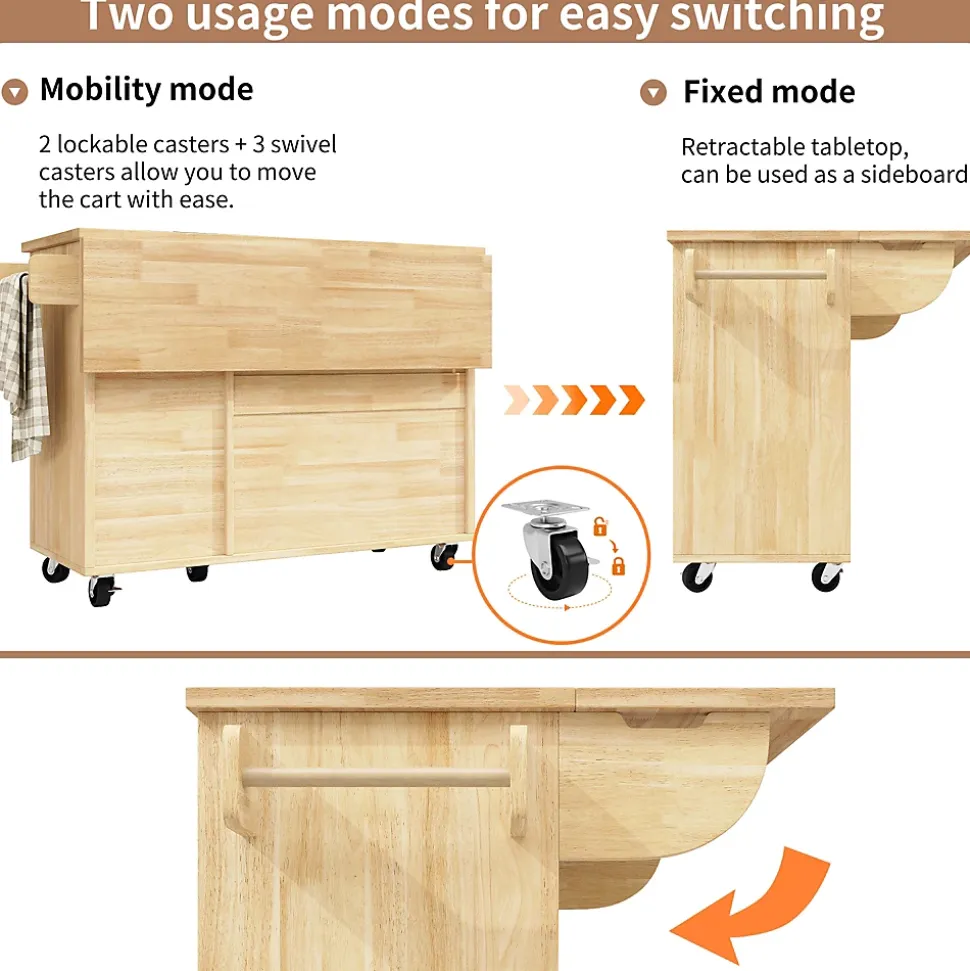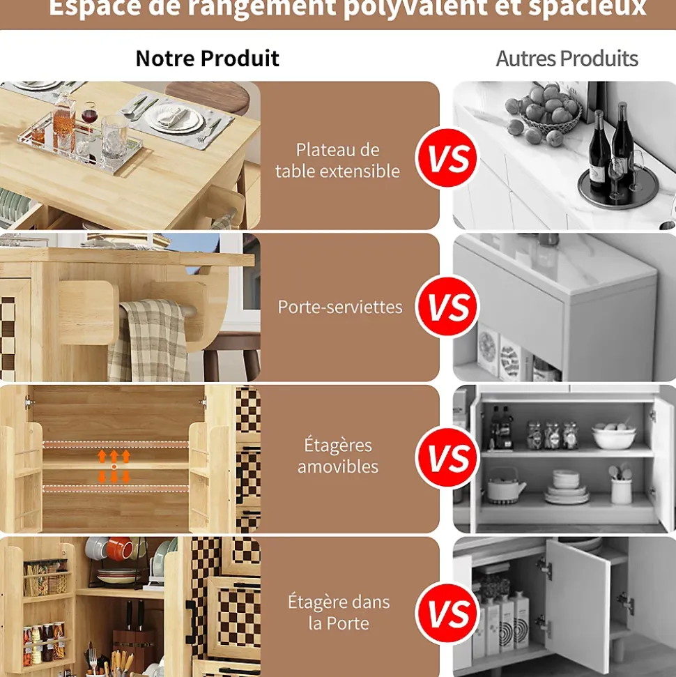 - 【Table pliante pratique】 Le plan escamotable sert de surface supplémentaire pour cuisiner ou comme table à manger, offrant flexibilité et gain de place pour adapter l’espace aux besoins quotidiens ou aux occasions spéciales.