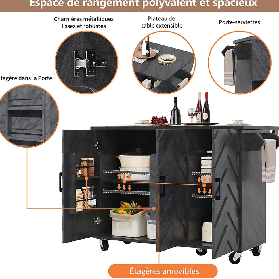 - 【Optimales Espace de Travail】 La cuisine centrale offre une surface généreuse pour préparer les repas, poser des ustensiles ou servir vos plats, facilitant l’organisation et rendant vos activités culinaires plus efficaces.