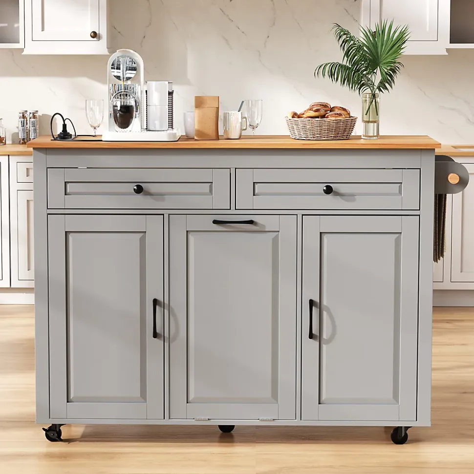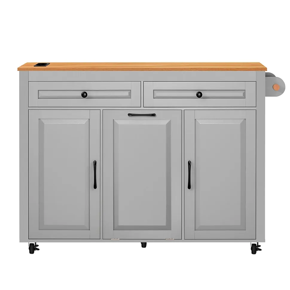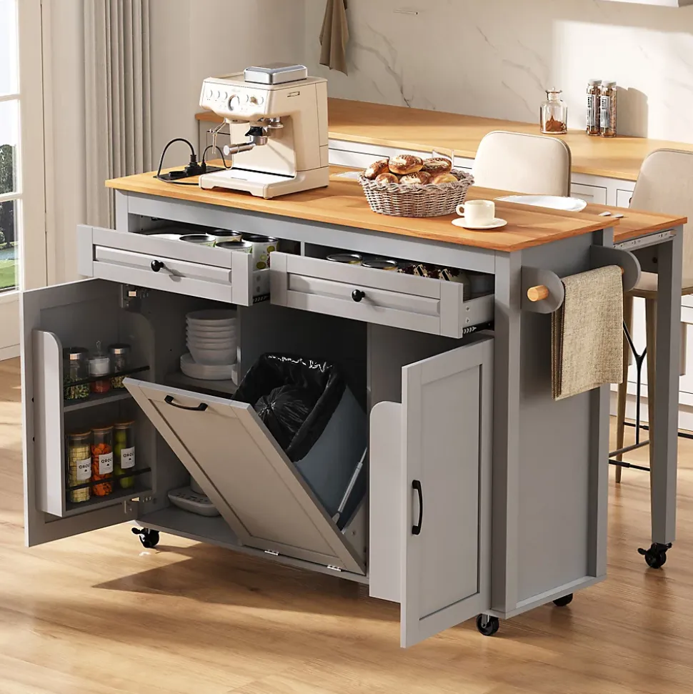 ▶ ▶ Détails ▶────────────────● Nom du produit : Îlot de cuisine sur roulettes● Couleur : Gris● Matériau : MDF● Dimensions du produit : 120 × 40-75 × 92 cm● Largeur maximale (étendue) : 75 cm● Poids : 52,7 kg● Capacité de la surface du plateau : 60 kg● Capacité de l’étagère/tiroir : 15 kg● Montage nécessaire : Oui, environ 2 heures● Nombre de colis : 2► Remarques ►※ Ce produit est livré en 2 colis.※ Poubelle : Veuillez noter que cet îlot de cuisine ne contient pas de poubelle.※ La couleur réelle du produit peut légèrement différer de l’image en raison de l’éclairage ou des paramètres de votre écran.※ En raison des mesures manuelles, une variation de 2-3 cm peut se produire.※ Toutes les images du produit ont été prises avec les produits réels.