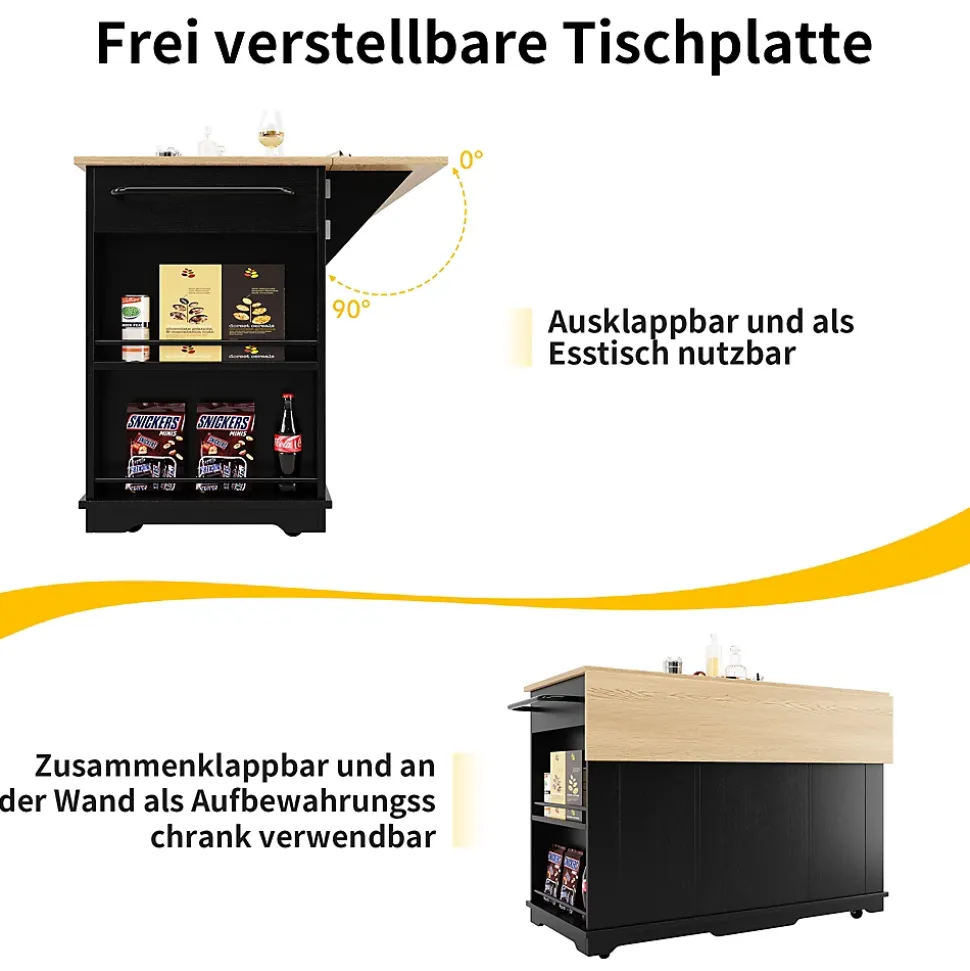 - 【Plan de travail spacieux】 La grande surface avec extension rabattable sert de plan de travail et se transforme en table pour les repas. Idéal pour cuisiner, découper et recevoir sans encombrer votre espace.