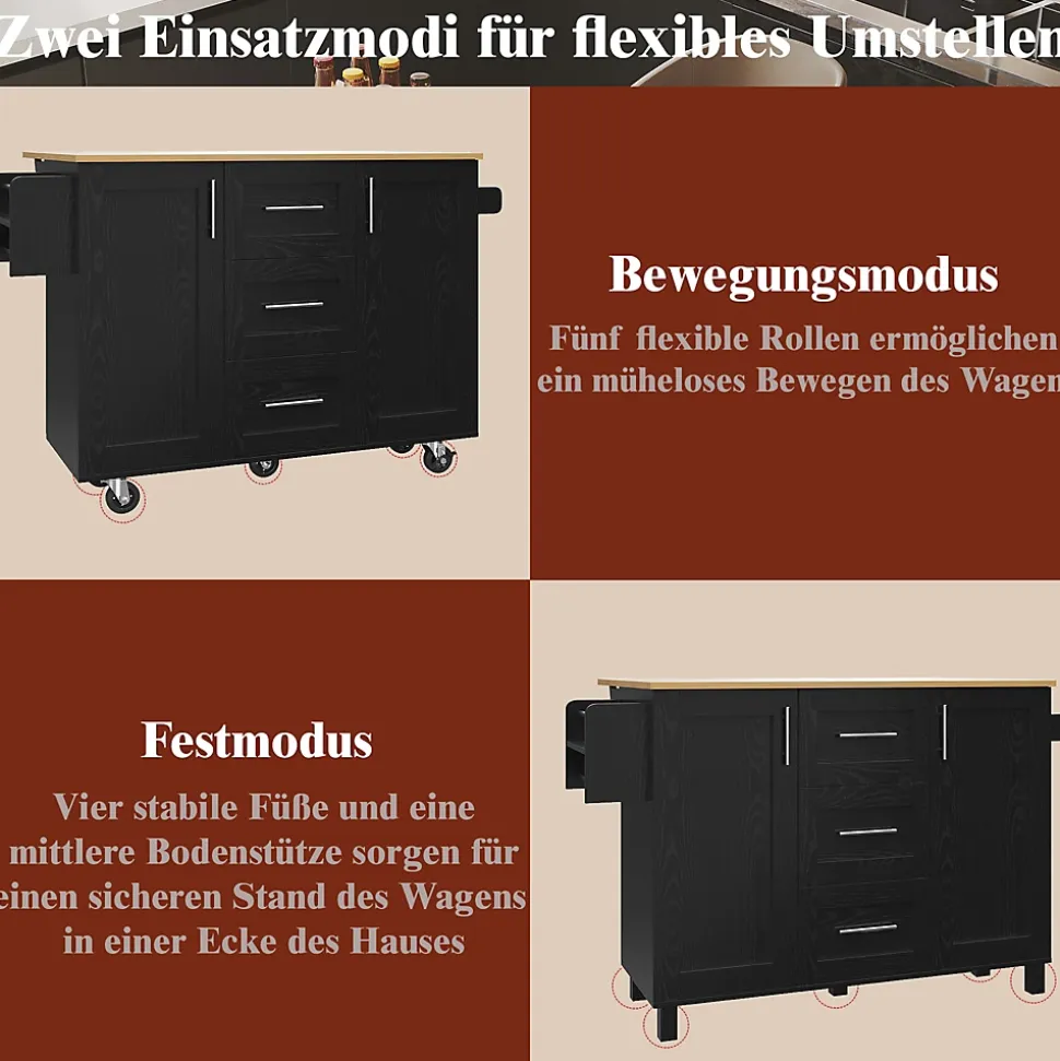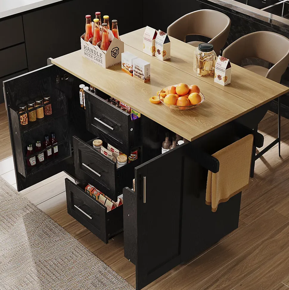 - 【Utilisation polyvalente】 Grâce à ses côtés rabattables, cette cuisine mobile se transforme facilement en îlot, plan de travail ou table d’appoint, idéale pour tirer parti de chaque centimètre dans les espaces restreints.