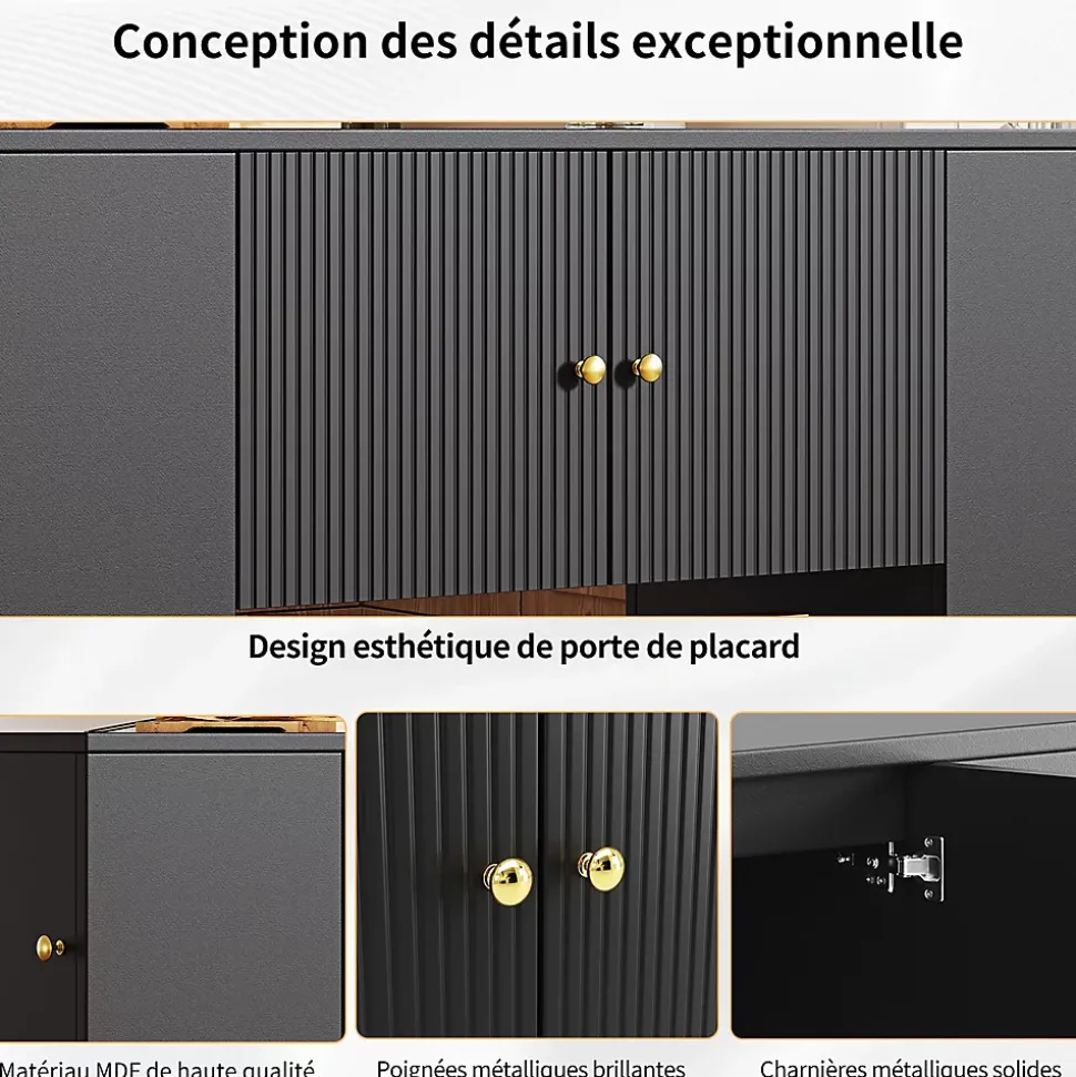 Caractéristiques du produit1. Cet îlot de cuisine est doté d’un plateau pliable qui se déplie pour former une table à manger de 70 cm de long.2. Design moderne et élégant : Il s’intègre harmonieusement à tous les styles d’intérieur, qu’ils soient modernes, champêtres ou classiques.3. Multifonctionnel : Ce meuble sert à la fois de table à manger et de meuble de rangement, optimisant ainsi la praticité et la flexibilité de votre cuisine.4. Grand espace de rangement : Les tiroirs et les étagères de chaque côté de l’îlot offrent un espace de rangement généreux pour répondre à tous vos besoins.5. Matériaux de qualité supérieure : Le plateau est fabriqué en MDF (panneau de fibres de moyenne densité) de haute qualité, alliant esthétique et durabilité, tout en étant facile à nettoyer et à entretenir. Les poignées en métal poli complètent l’élégance de l’îlot, pour un confort et une durabilité accrus.Spécifications du produit :1. Dimensions déplié : 140 x 70 x 90 cm (Longueur x Largeur x Hauteur)2. Dimensions plié : 110 x 40 x 90 cm (Longueur x Largeur x Hauteur)3. Poids du produit : 52,9 kg4. Matériaux : Panneaux de fibres de moyenne densité, métal5. Charge maximale : 60 kg6. Temps de montage : 1 à 2 heures7. Contenu de l’emballage : Un îlot de cuisine, accessoires de montage8. Quantité par colis : 29. Lieu d’origine : Chine10. Remarque : Les colis seront expédiés par lots et peuvent arriver en plusieurs fois. Veuillez prévoir quelques jours pour la livraison.