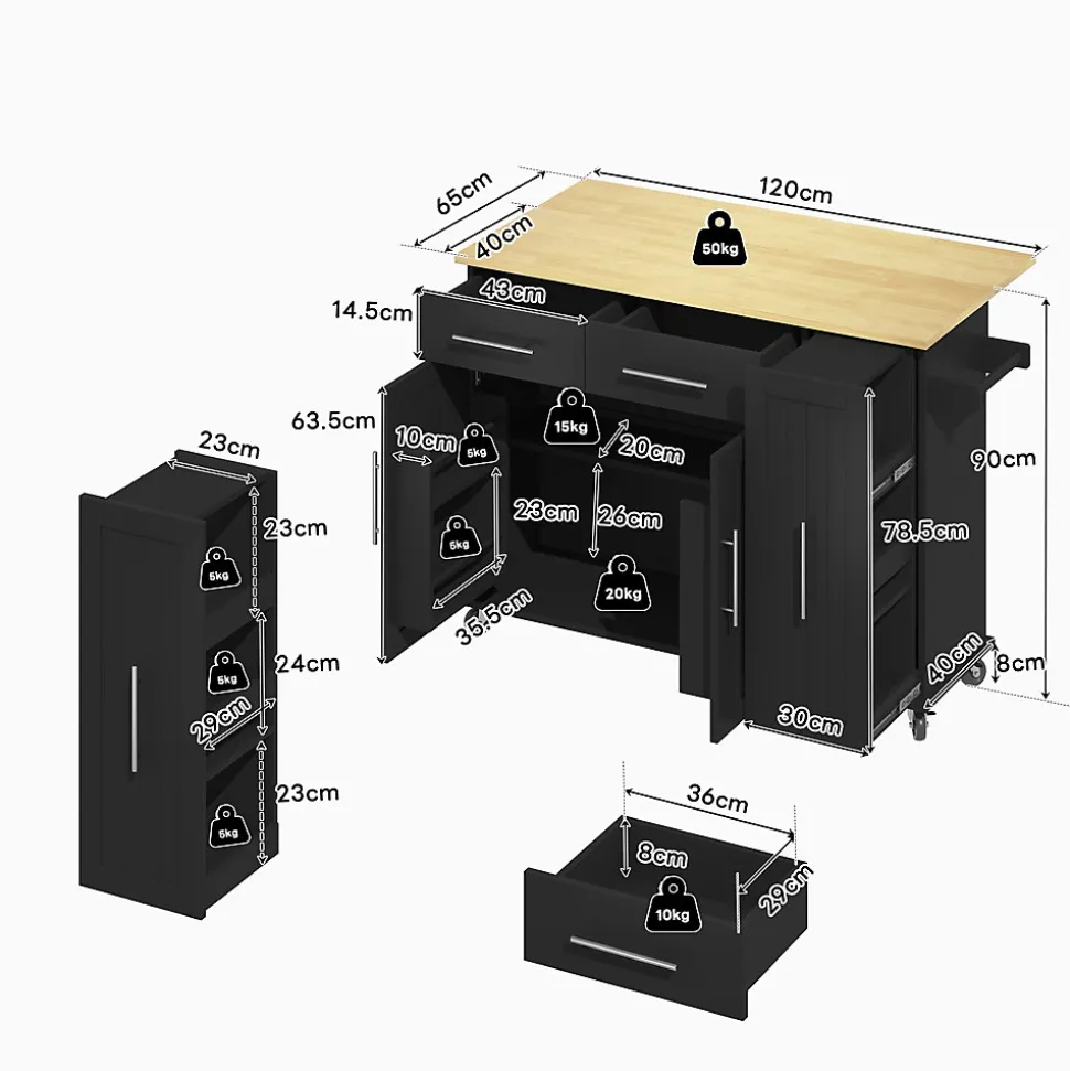 - 【Extension du Plan de Travail】 La tablette rabattable transforme cette île de cuisine de 120 x 45 cm en un espace de travail généreux de 120 x 70 cm. Cette extension intelligente offre la surface parfaite pour déposer plusieurs plats, recevoir des convives ou travailler confortablement sans être à l’étroit.