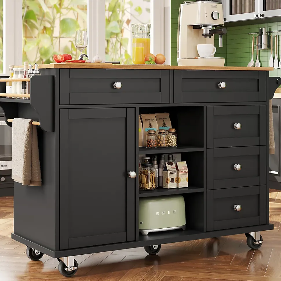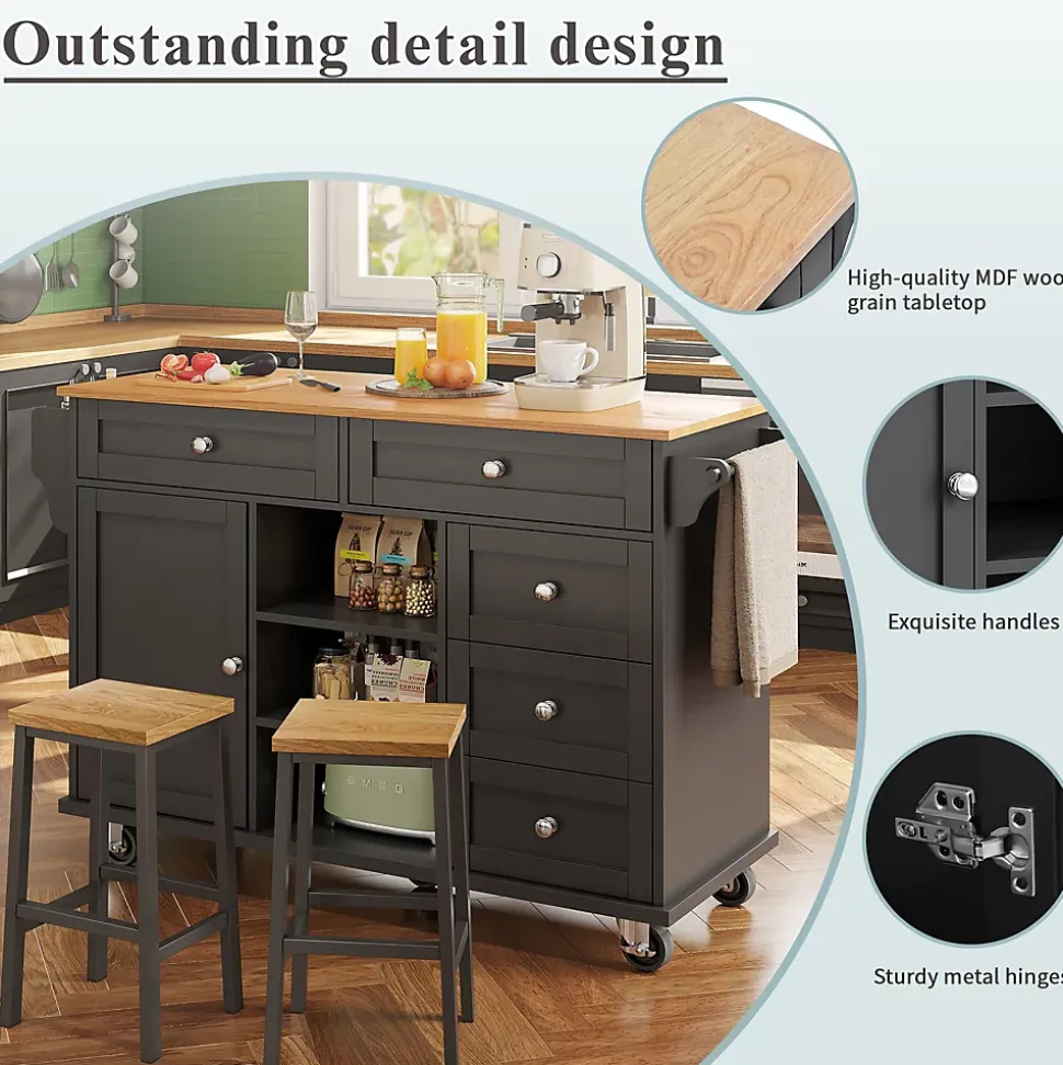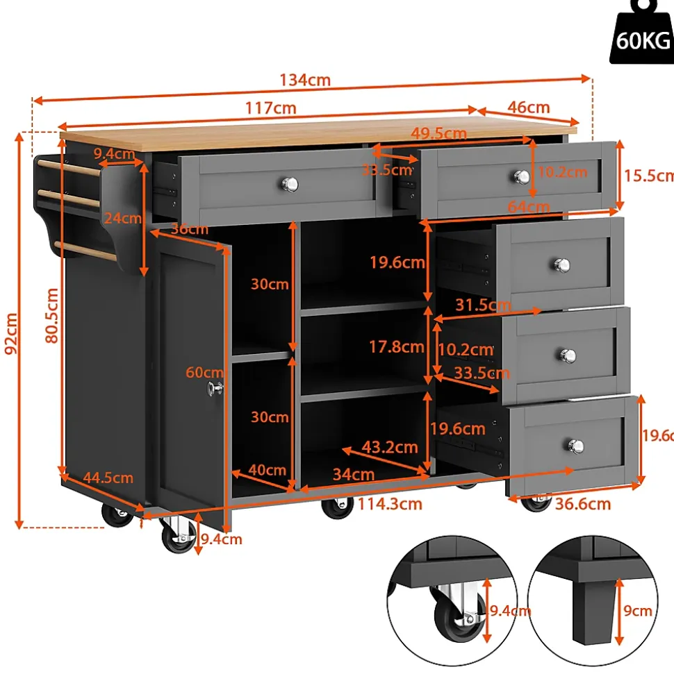 Caractéristiques du produit : Fabriqué en panneaux de fibres de moyenne densité (MDF) de haute qualité, ce produit est durable et présente une texture naturellement chaleureuse. Son élégante poignée est non seulement esthétique, mais aussi facile à manipuler, offrant ainsi une expérience utilisateur confortable. Les étagères réglables peuvent être positionnées sur trois hauteurs différentes pour s’adapter à vos besoins de rangement pour vos ustensiles de cuisine. Des étagères en bois supplémentaires de chaque côté facilitent l’organisation et le rangement de vos ustensiles. Cette conception améliore non seulement l’efficacité du rangement, mais optimise également l’espace de la cuisine, créant ainsi un environnement plus spacieux et lumineux. Équipé de cinq roulettes pivotantes, il se déplace facilement et s’installe aisément. De plus, quatre pieds de support fixes et une équerre centrale assurent une stabilité optimale. Son design élégant et moderne, associé à des matériaux de haute qualité, garantit sa durabilité.Caractéristiques du produit :Dimensions : 134 x 46 x 92 cm (Longueur x Largeur x Hauteur)Poids : 54,85 kgMatériau : Panneau de fibres de moyenne densité (MDF)Charge maximale supportée : 60 kgTemps de montage : 1 heureContenu : Meuble et accessoires de montagePoids du colis : 58,85 kgQuantité : 2 unitésOrigine : Chine