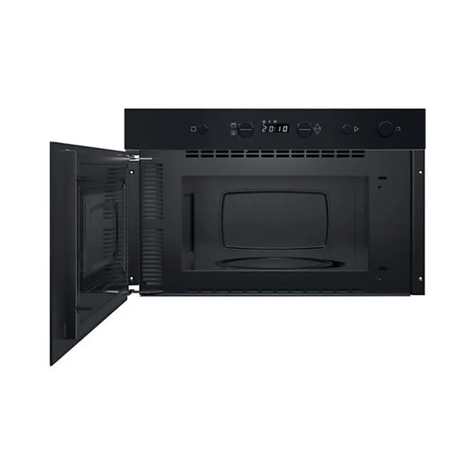 Micro-ondes solo encastrable INDESIT IMK11B – Compact et performant, ce modèle de 22 L s’intègre parfaitement à votre cuisine – Il propose 4 niveaux de puissance pour une cuisson adaptée à chaque plat – Son programmateur électronique, ses boutons intuitifs et son affichage LED blanc facilitent son utilisation – Profitez des fonctions Démarrage rapide et Décongélation rapide pour un gain de temps au quotidien – La diffusion des ondes en 3D assure une cuisson homogène et efficace – Son plateau tournant de 250 mm garantit une répartition optimale de la chaleur – Sécurité enfants intégrée pour une utilisation sereine – Éclairage intérieur pratique pour surveiller la cuisson – Porte latérale avec ouverture par bouton pour un accès simplifié – Finition verre noir – Niche d’encastrement : 360 x 556 x 300 mm.