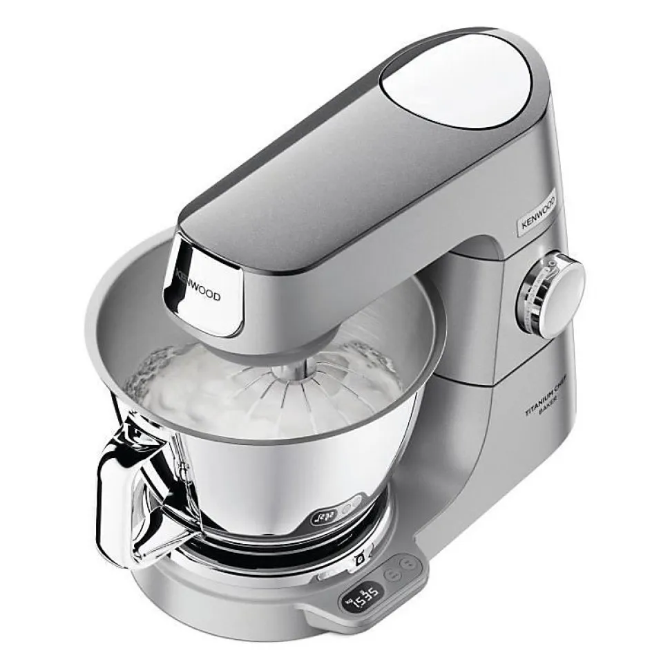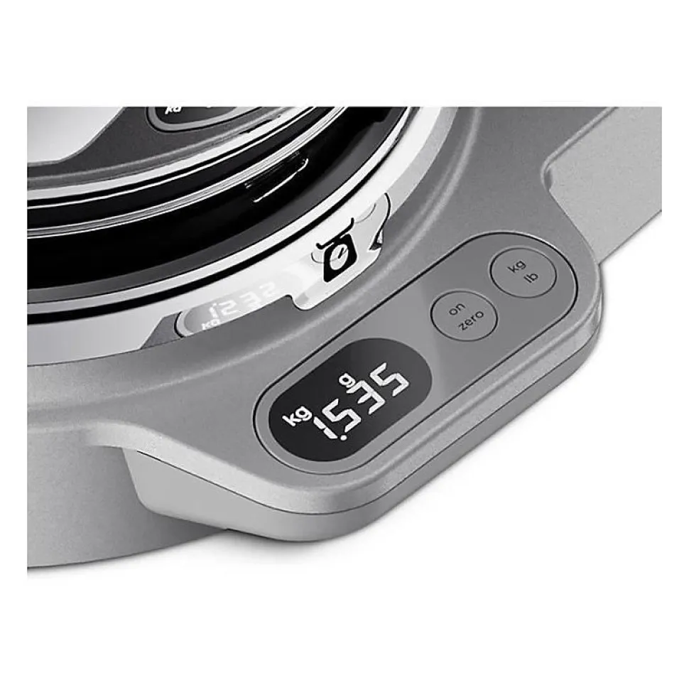 KENWOOD KVC85.124.SI – Robot pâtissier Titanium Chef Baker – 2 bols en inox 3,5L et 5L – Balance intégrée 6kg – Blender 1,8L – 1200W Le robot pâtissier multifonction, qui pese mais plus encore! Entierement réalisé en métal, il est doté de 2 bols d’une capacité de 5 L et 3,5 L. Doté du mouvement planétaire, d’un kit pâtisserie en acier inoxydable (pétrin, fouet, batteur K) et d’un batteur souple. Grâce a sa balance intégrée il est possible de peser au gramme