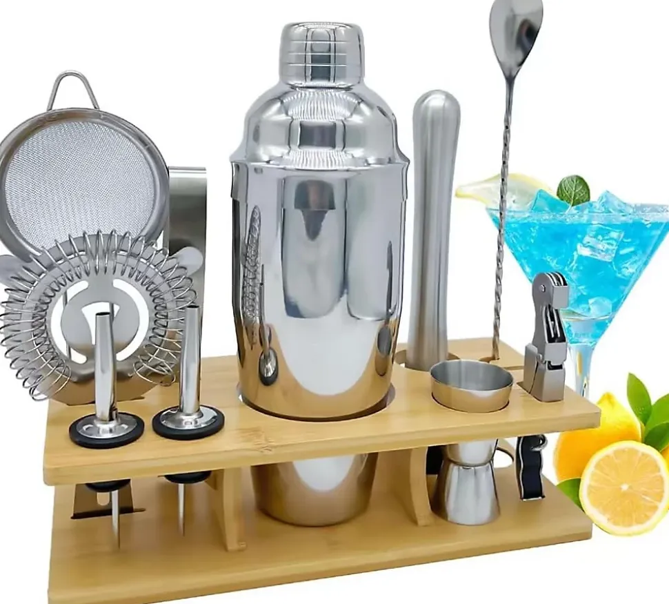 Préparez vos cocktails préférés avec ce kit barman mixology complet de 11 pièces comprenant un shaker de 19 oz, un godet 0,5/1 oz, une cuillère mélangeuse, un pilon, une pince à glace, un tamis, un tire-bouchon, 2 becs verseurs et un présentoir en bambou. Fabriqué en acier inoxydable de qualité alimentaire, ce set est durable, anti-fuite, facile à nettoyer et compatible lave-vaisselle. Le support en bambou permet de ranger et d’exposer élégamment vos outils, pratique pour une utilisation quotidienne ou pour impressionner vos invités. Parfait pour débutants comme professionnels, il permet de réaliser une grande variété de cocktails comme mojito, whisky, rhum, gin, margarita et tequila. Idéal comme cadeau pour les pères, maris ou amateurs de cocktails pour anniversaires, fêtes des pères, Noël ou pendaisons de crémaillère.