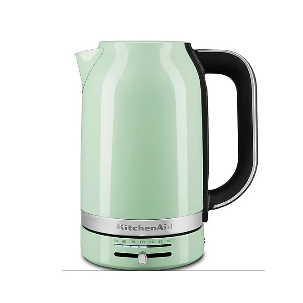 La bouilloire KitchenAid 5KEK1701EPT est dotée d’une capacité de 1.7 litres et d’un contrôle variable de la température de 50 à 100°C. Elle dispose d’une technologie de chauffe automatique et d’une rotation à 360° sur la base pivotante. Son couvercle à charnière avec bouton-poussoir facilite son utilisation.