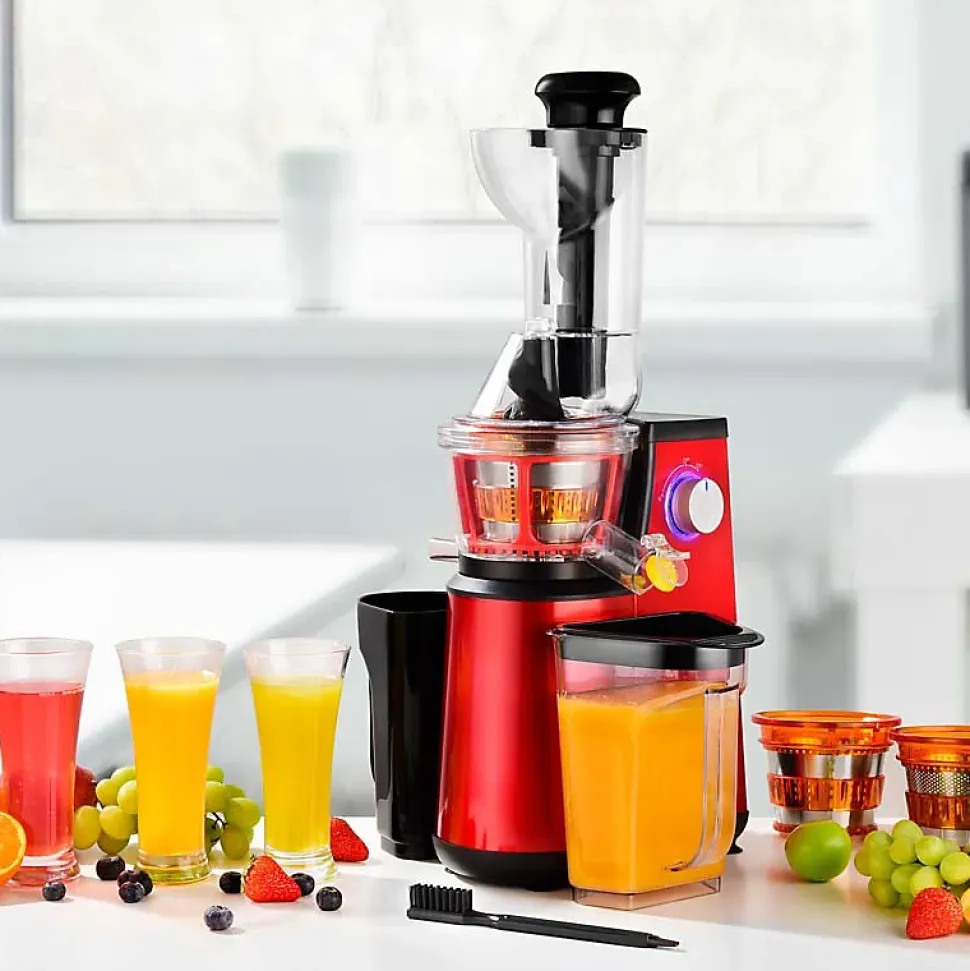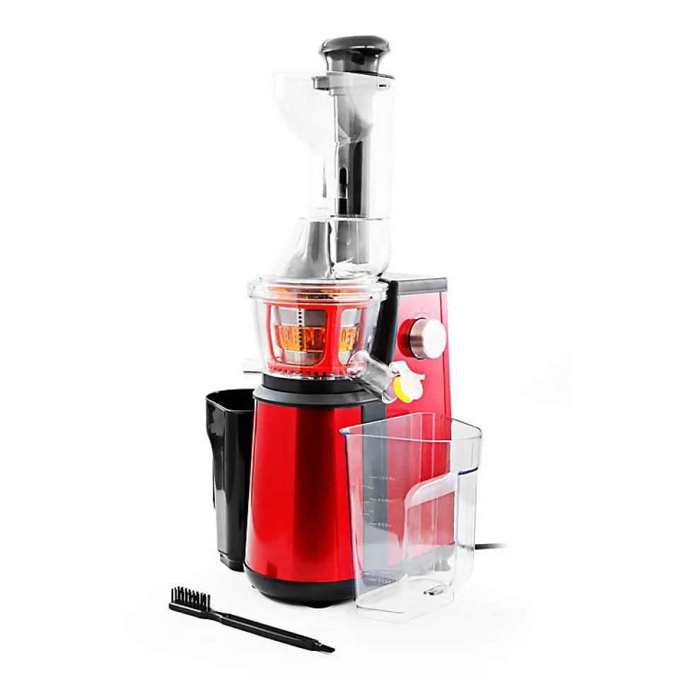 Les plus du ULTIMATE RED de KitchenCook : Puissance de 400 WBPA FREECapacité de 1 L 1 Vitesse: 60-80 RPMUne technologie de pression douce assure une qualité de jus Une fonction reverse qui permet de débloquer les aliments coincésBec d’introduction extra grand : 8.2 cm ; pour éviter de couper vos fruitsBecs verseurs à clapet (système anti-gouttes) : pour une parfaite étanchéité et un service au verre sans risque de débordement Pressage facile, sans effort pour l’utilisateurPieds antidérapants vous offrant une stabilité d’utilisationVerrouillage du couvercle et de la cuveÉcoulement directeL’ULTIMATE RED permet une économie d’énergie grâce à une puissance électrique utilisée très basse Un minimum de déchets secs comparé à une centrifugeuse classiqueInterrupteur ON/OFFSon système silencieux (60 dB) ainsi que son boîtier en inox représentent parfaitement ce produit KitchenCook, à la fois design et pratique.Longueur du cordon : 1.2mNettoyage facile grâce à ses pièces démontables et compatible avec le lave-vaisselle (sauf l’appareil principal)Les accessoires du produit : L’extracteur de jus ULTIMATE RED de KitchenCook comprend plusieurs accessoires : le poussoir en ABS, la brosse de nettoyage en ABS, les récipients à jus et à pulpes en ABS