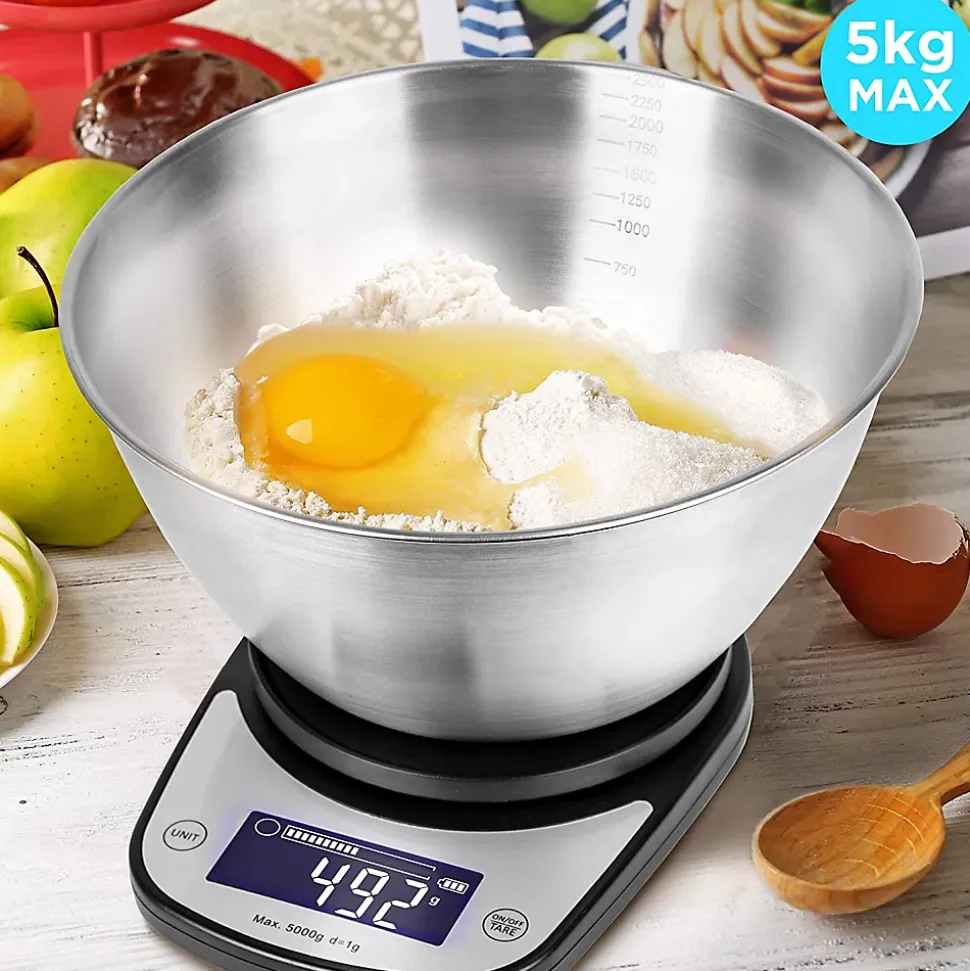 La balance de cuisine KS5000 BKSS de Duronic vous accompagnera dans toutes vos préparations. Facile à utiliser grâce à ses deux touches, toute la famille pourra participer. La KS5000 BKSS a une capacité de 5 kg et dispose d’un large bol en inox de 2.5 litres afin de réaliser vos préparations directement dans le contenant. La précision de cette balance vous permet de l’utiliser également comme balance postale.Ce modèle bénéficie d’une fonction TARE permettant d’ajouter du poids au fur et à mesure. Il suffit par exemple de placer votre contenant sur la plateforme de pesée et d’appuyer sur la touche TARE pour remettre la balance à zéro. Vous pouvez alors peser votre premier ingrédient, remettre la balance à zéro et en ajouter un second, etc. Cette fonction présente un gain de temps en vous permettant de mesurer tous vos ingrédients dans un seul contenant.La KS5000 BKSS affiche les résultats dans différentes unités de mesure : vous pouvez passer des grammes aux livres et onces et des millilitres aux onces liquides en n’appuyant que sur une seule touche. Vous pouvez réaliser des recettes internationales en étant sûr d’avoir les bonnes qualités ! Il n’est plus nécessaire de faire travailler vos méninges ou de passer par un convertisseur en ligne.Les résultats sont calculés par 4 capteurs très précis, cette balance peut donc être utilisée pour peser différents objets ; par exemple, des lettres pour calculer les frais de port. De plus, les résultats sont précis à 1 g près. Les mesures sont affichées sur un large écran rétroéclairé afin d’assurer une lecture claire et lisible des résultats. Cette balance bénéficie également d’un indicateur de batterie faible et d’un indicateur de surcharge.Caractéristiques. Taille de la surface: 19.4 x 13.8 x 3 cm. Couleur: noir. Taille du bol: 22 x 10.5 cm. Capacité du bol: 2.5 litres. Bol amovible. Capacité de pesée maximale: 5 kg. Poids: 440 g. Unités: grammes (g), millilitres (ml), livres et onces (lb.o