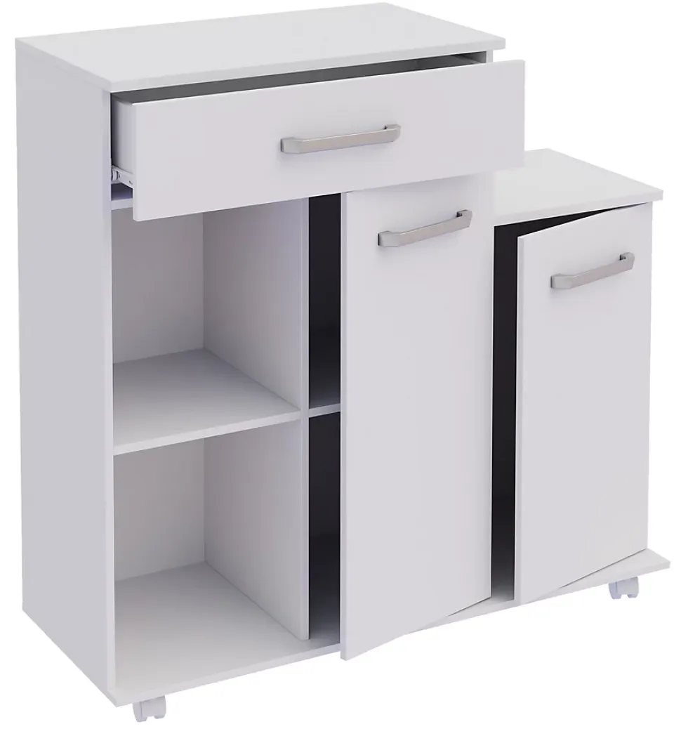 Points forts:- un tiroir et deux portes tournantes pour un espace de rangement suffisamment dissimulé- Deux compartiments ouverts pour un accès rapide- Dimensions env. H. 88 x W. 90 x D. 33 cmChariot de cuisine pratique et spacieux pour un espace de rangement supplémentaire dans la cuisine. Trois tiroirs et trois compartiments ouverts font du chariot de service mobile une merveille d’espace de rangement. La surface revêtue rend cette armoire particulièrement facile à entretenir et insensible à l’humidité. Depuis les années 1970, VCM se spécialise dans la conception, la production et la distribution de meubles avec un juste rapport prix/performance et a déjà magnifié des millions de ménages.