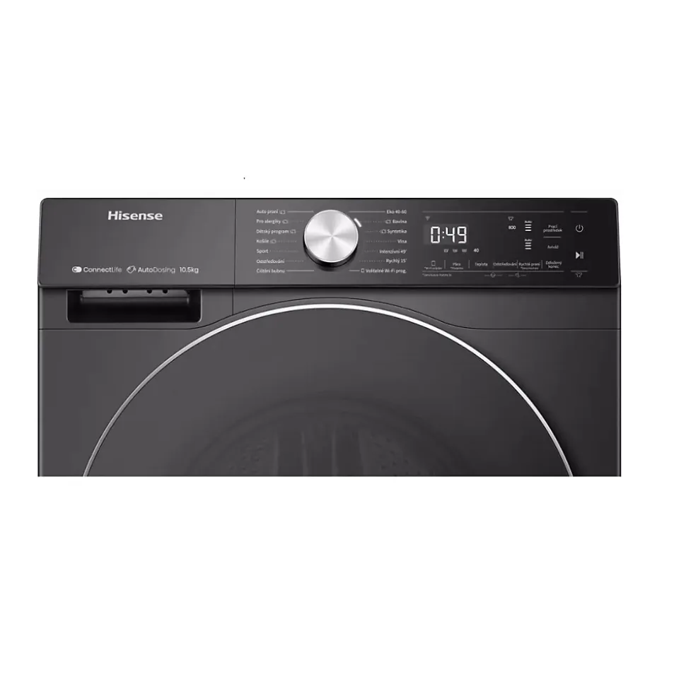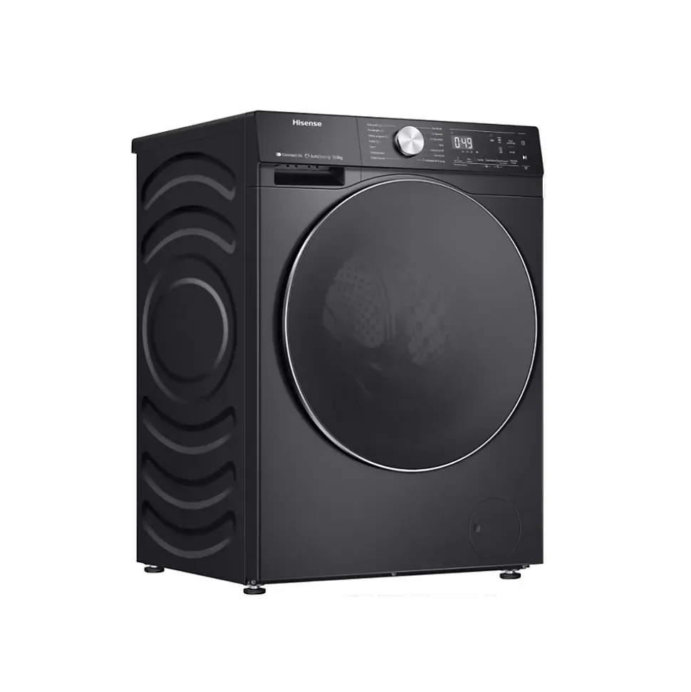 Lave-linge frontal 10.5 kg 1400 tours/min noir Hisense – Lave-linge hublot WF5S1045BB de Hisense.Un réservoir stock la lessive et l’adoucissant et diffuse la quantité optimale à chaque cycle.Gardez un œil sur vos consommations d’eau et d’électricité.Un débit d’eau puissant et rapide pour un nettoyage efficace.Un traitement additionnel à la vapeur est disponible sur certains programmes en fin de cycle afin d’éliminer allergènes et bactéries. – Type de produit : Lave-linge frontal.Capacité de lavage (kg) : 10.5.Classe d’efficacité énergétique : A.Vitesse d’essorage (trs/min) : 1400.Classe d’efficacité d’essorage : B.Niveau sonore max.(dB) : 72.Classe d’émission de bruit (en essorage) : A.Conso. énergie /100 cycles (kWh) : 52.Conso. eau cycle Eco 40-60 (L/cycle) : 41.Durée cycle Eco 40-60 (h:min) : 3:59.Volume tambour (L) : 66.Lave-linge connecté : Oui.Technologie vapeur : Oui.Nbre de programmes : 15.Coton : Oui.Eco 40-60° : Oui.Délicat : Oui.Laine : Oui.Rapide : Oui.Couette / Duvet : Oui.Sport : Oui.Programmes spéciaux : Coton couleur, Mélange / Mix, Vapeur anti-allergies, Vapeur spécial bébé, Couleurs foncées , Rinçage + Essorage, Nettoyage du tambour.Touches sensitives : Oui.Départ différé : Non.Fin différée : Oui.Rinçage plus : Oui.Variation d’essorage : Oui.Touches spéciales : Dosage automatique, Prélavage, Favoris.Ecran : Oui.Type d’affichage : LED digital.Type de moteur : Inverter.Sécurité enfant : Oui.Autre(s) : Contrôle de l’équilibre du tambour.Couleur : Noir.Hauteur (cm) : 84.5.Largeur (cm) : 59.5.Profondeur (cm) : 61.Poids (kg) : 69.