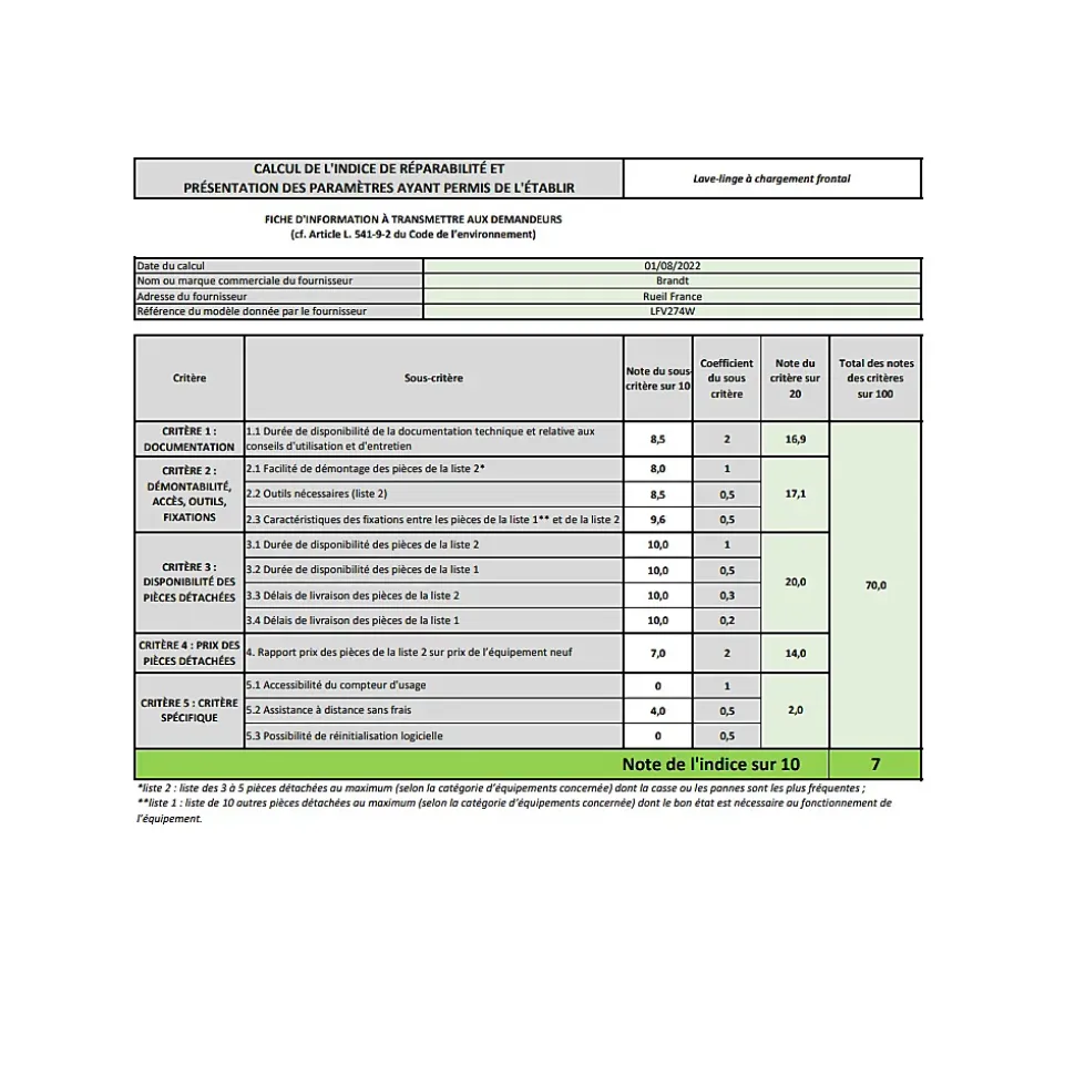 Lave-linge frontal 7kg 1400 tours/min Vedette – Le lave-linge frontal LFV274W de Vedette est doté d’un programme Hygiène qui élimine de vos vêtements et masques les principaux virus et jusqu’à 99,9% des bactéries grâce à une phase de lavage de 30 minutes à une température légèrement supérieure à 60° C. Le programme Rapide 60′ permet de laver en seulement une heure une charge quotidienne de linge normalement sale, tout en garantissant un résultat de lavage parfait. Le programme Jean est spécialement conçu pour laver les jeans(et vêtements de couleur sombre). Il permet de réduire le délavage et son rinçage renforcé évite toute trace résiduelle de lessive. – Type de produit : Lave-linge frontal.Fonction séchage : Non.Type de chargement : Frontal.Capacité nominale programme Eco 40-60 (kg) : 7.IEE : 79.8.Classe d’efficacité énergétique : D.Indice d’efficacité de lavage : 1.031.Efficacité de rinçage (g/kg) : 5.Conso. d’énergie pondérée pour 100 cycles (kWh) : 69.Conso. d’énergie cycle lavage »Eco 40-60 » (kWh) : 0.688.Conso. d’eau pondérée par cycle (litres) : 45.Temp. max. (°C) à l’intérieur du textile traité (capacité nominale) : 50.Temp. max. (°C) à l’intérieur du textile traité (moitié) : 27.Temp. max. (°C) à l’intérieur du textile traité (quart) : 23.Taux d’humidité résiduelle pondéré (%) : 51.6.Vitesse d’essorage (t/min) : 1400.Classe d’efficacité d’essorage : B.Durée du programme »Eco 40-60 » capacité nominale (h:min) : 3:28.Durée du programme »Eco 40-60 » moitié (h:min) : 2:40.Durée du programme »Eco 40-60 » quart (h:min) : 2:40.Emissions de bruit acoustique dans l’air (dB(A)) : 79.Classe d’émission de bruit acoustique dans l’air : C.Mode arrêt (W) : 0.5.Mode veille (W) : 1.Démarrage différé (W) : 4.Type de construction : Pose libre.Volume tambour (L) : 45.Lave-linge connecté : Non.Capacité variable automatique :