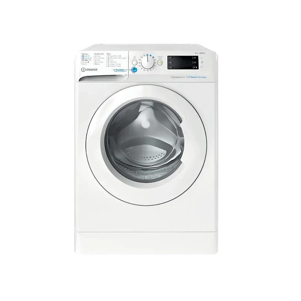 INDESIT – Lave linge hublot BWE 91295X WV FR – Pose libreCe lave linge hublot INDESIT BWE 91295X WV FR est un appareil à la fois performant et pratique pour laver votre linge en toute simplicité. Avec sa capacité de lavage de 9 kg, il vous permet de faire des lessives de grande taille en une seule fois. Sa vitesse d’essorage maximale de 1151 tr/min assure un linge bien essoré en un temps record. Grâce à sa classe énergétique B, il est économique en termes de consommation d’énergie et vous permet de réaliser des économies sur votre facture d’électricité. Son niveau sonore de 79 dba en lavage et en essorage est relativement silencieux pour un confort optimal lors de son utilisation. Avec des dimensions de 85 cm de hauteur, 60 cm de largeur et 63 cm de profondeur, il trouve facilement sa place dans votre espace. Ce lave linge hublot blanc est idéal pour une utilisation quotidienne à la maison.- Type de produit : lave linge hublot- Marque d’électroménager : INDESIT- Modèle de lave linge : BWE 91295X WV FR- Type de chargement : hublot- Type de pose : pose libre- Type de facette : lave linge- Classe énergétique : B- Hauteur : 85 cm- Largeur : 60 cm- Profondeur : 63 cm- Poids : 71 kg- Couleur : blanc- Capacité de lavage : 9 kg- Vitesse d’essorage maximale : 1151 tr/min- Qualité d’essorage : B- Séchant : Non- Indice de réparabilité : 7.7- Connecté : non- Intégrable : non- Fonction départ différé- Niveau sonore en lavage : 79 dba